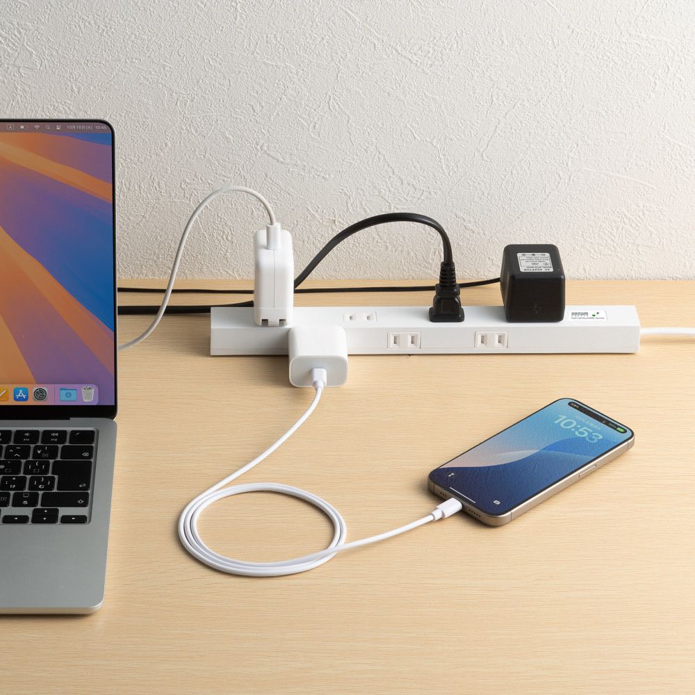●上面&側面交互差込口レイアウトでACアダプタ接続に便利なスリムタイオプの電源タップです。