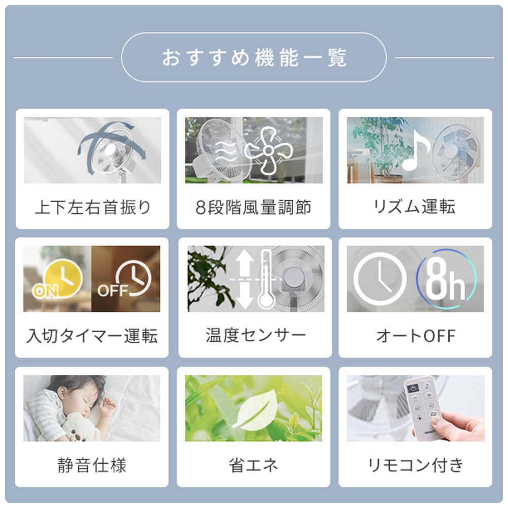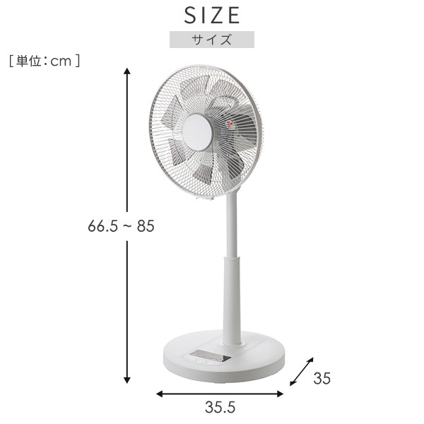 30cm DCモーター搭載リビング扇風機。立体首振り機能 リモコン。