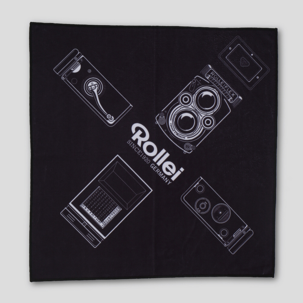 お馴染み[ROLLEIFLEX]ボディをデザインしたカメラクロスです。生地の表面と裏面にそれぞれ特殊な素材を使っており、接触するとしっかりくっつきます。カメラ以外にもスマホやタブレット、ノートPCなどを包むのにも便利です。