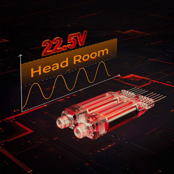 JAN6418は22.5Vの陽極電源設計を採用し、電圧が高いことで安定性とフルパフォーマンスを両立し、真空管2基による個性豊かな響きによって、温かみがあり滑らかでアナログライクな真空管サウンド叶えています。