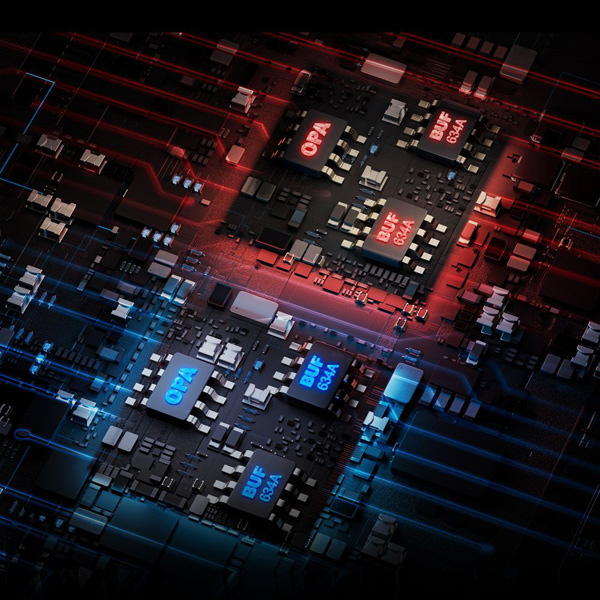 Texas Instruments製OPAMP×4+BUF634A×4を搭載し、小型DAC/AMPというコンパクトなボディの中に、卓越したオーディオ回路を構築しました。