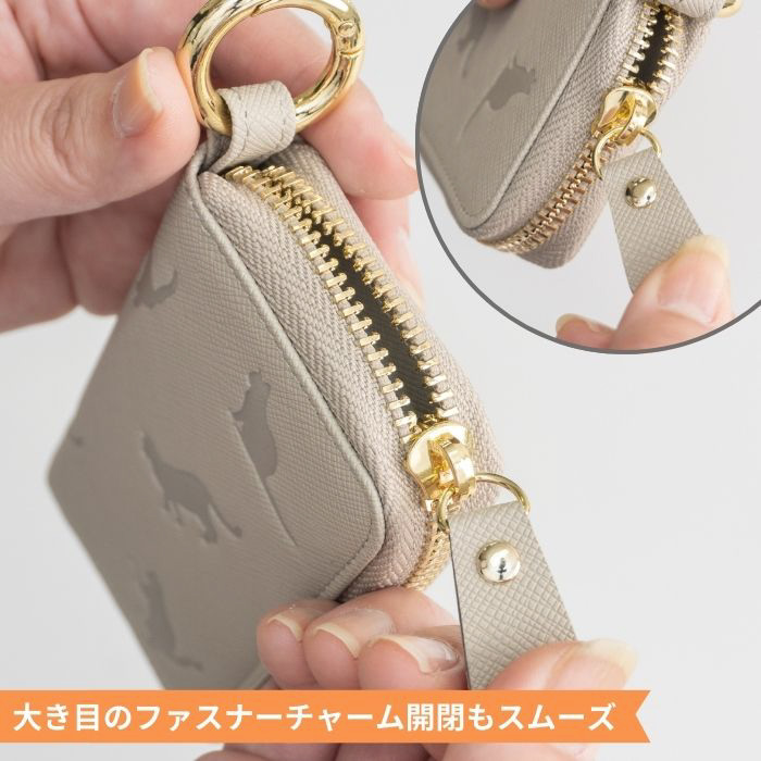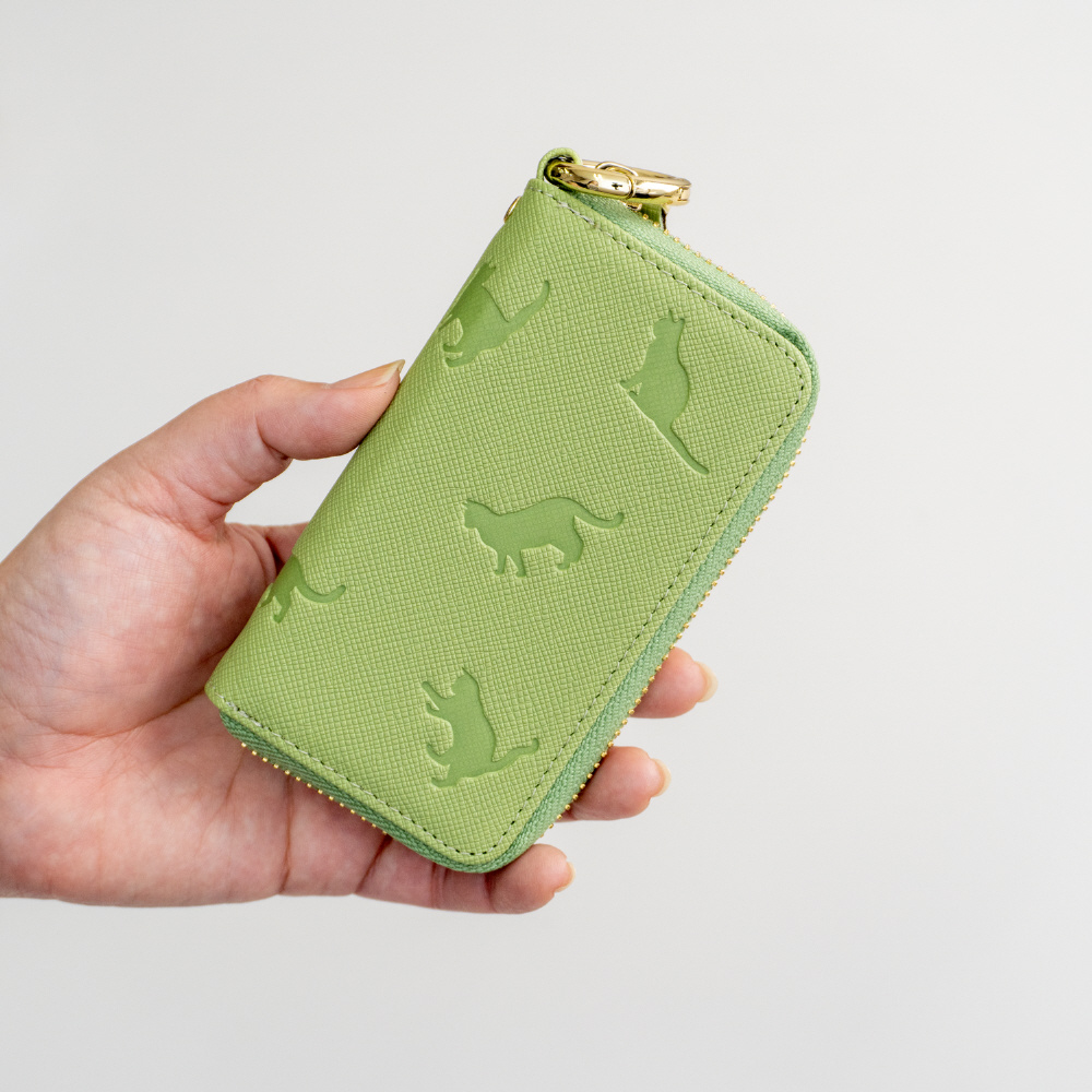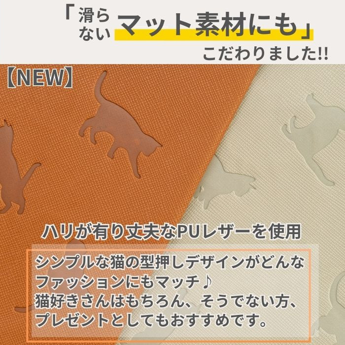 シンプルな猫の型押しデザインがどんなファッションにもマッチ!猫好きさんはもちろん、そうでない方も。