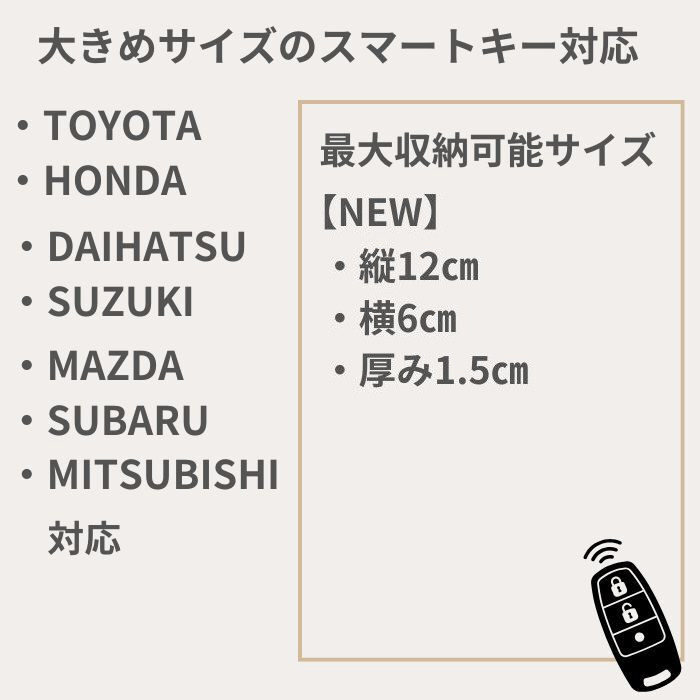 大きなスマートキーもスリムに収納!6cm×11cmまでのスマートキーが収納可能!