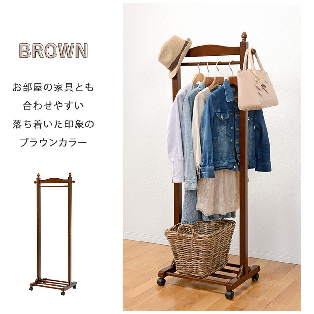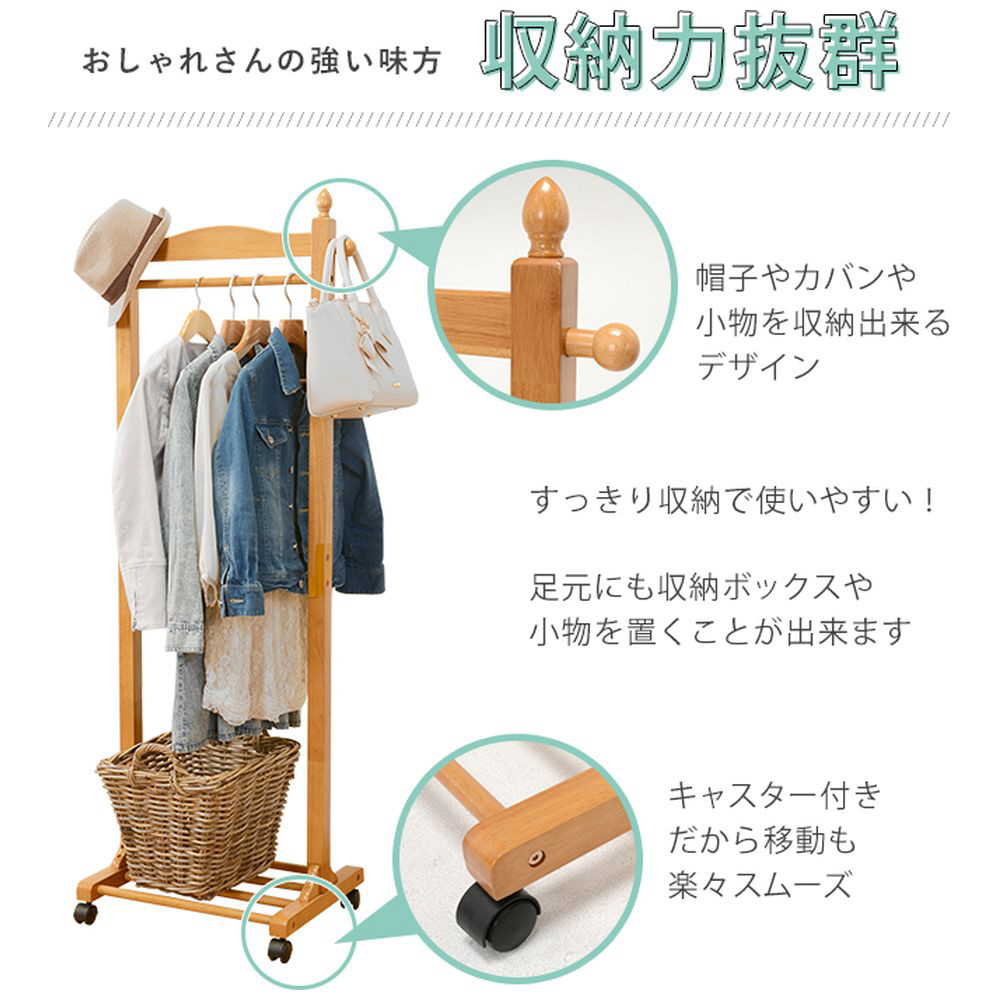 キャスター付きで移動もできる棚付きハンガーラック。