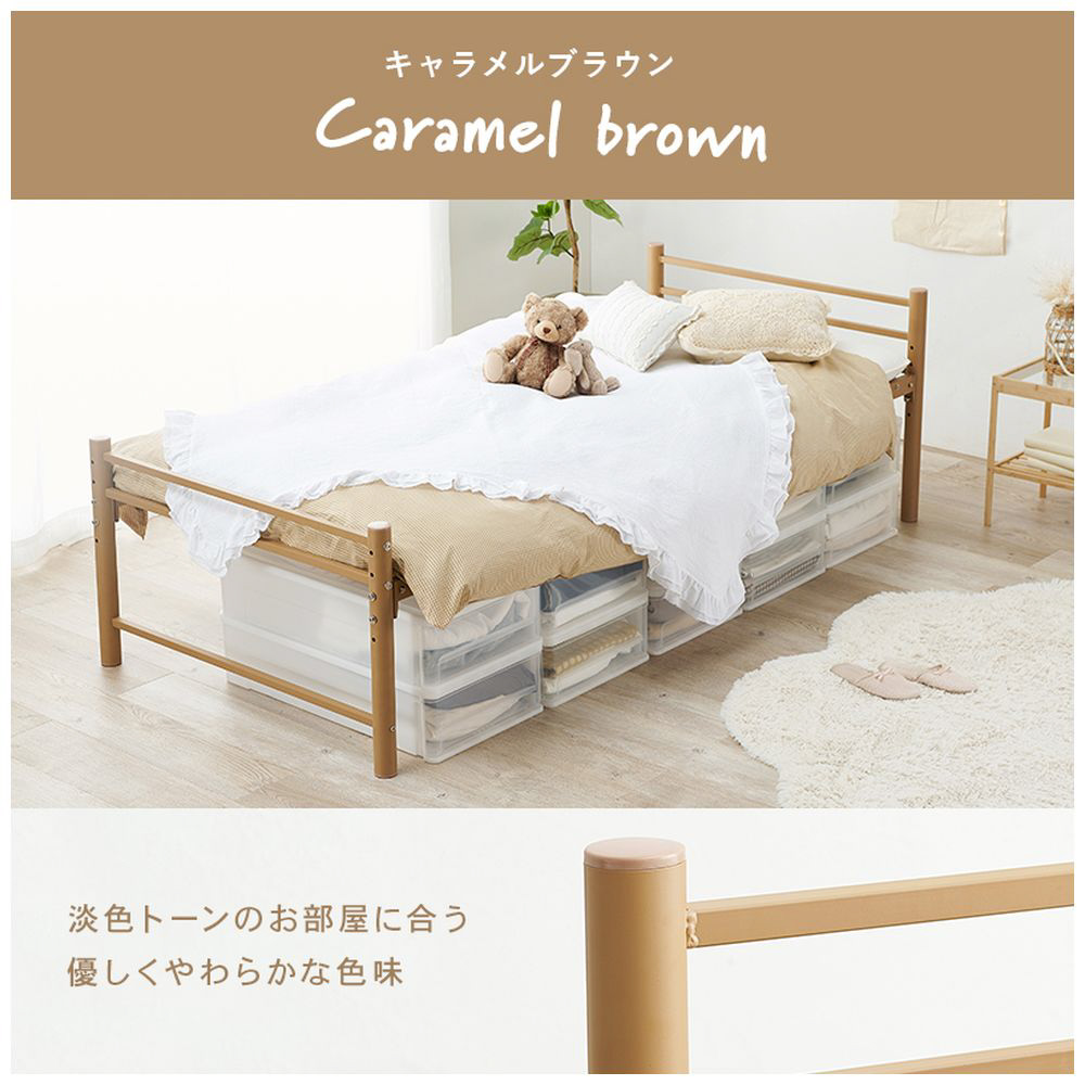 敷布団がそのまま使えるロングサイズ。床面下に収納ができ、ニュアンスカラーが豊富なオシャレなベッドです。