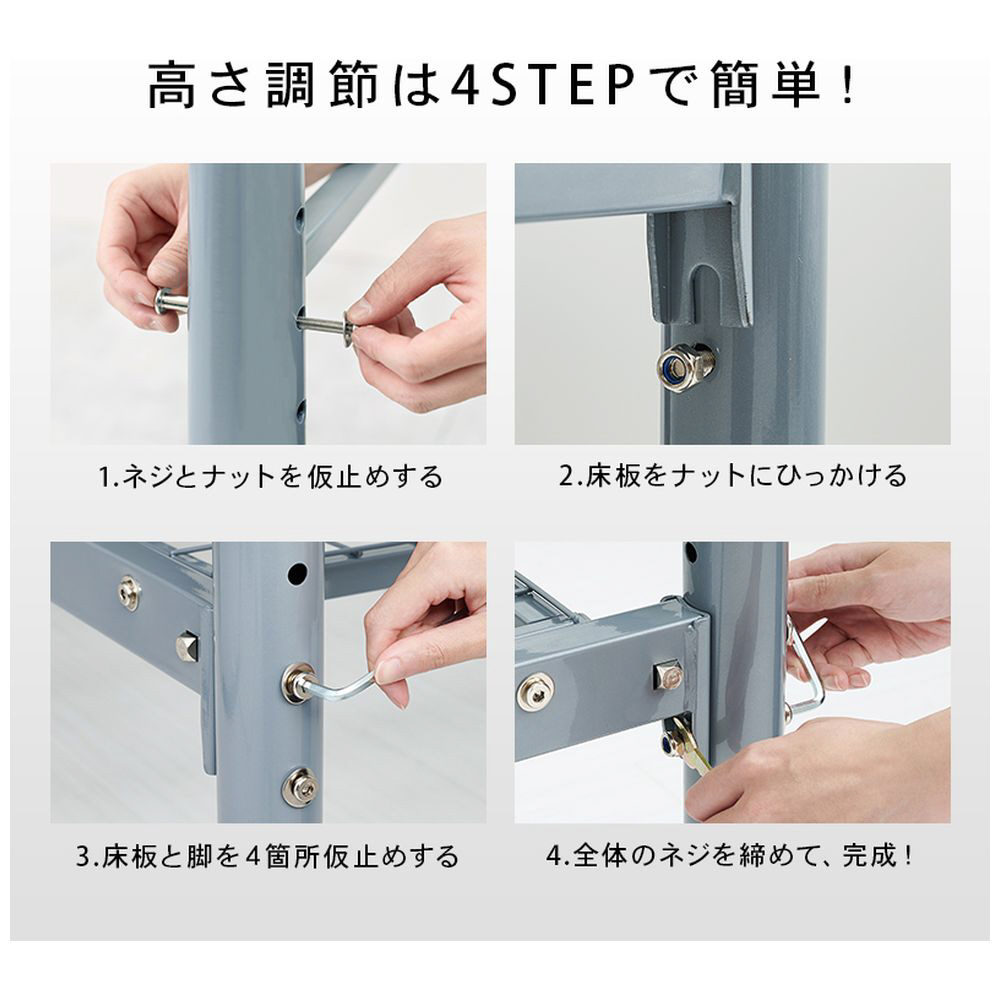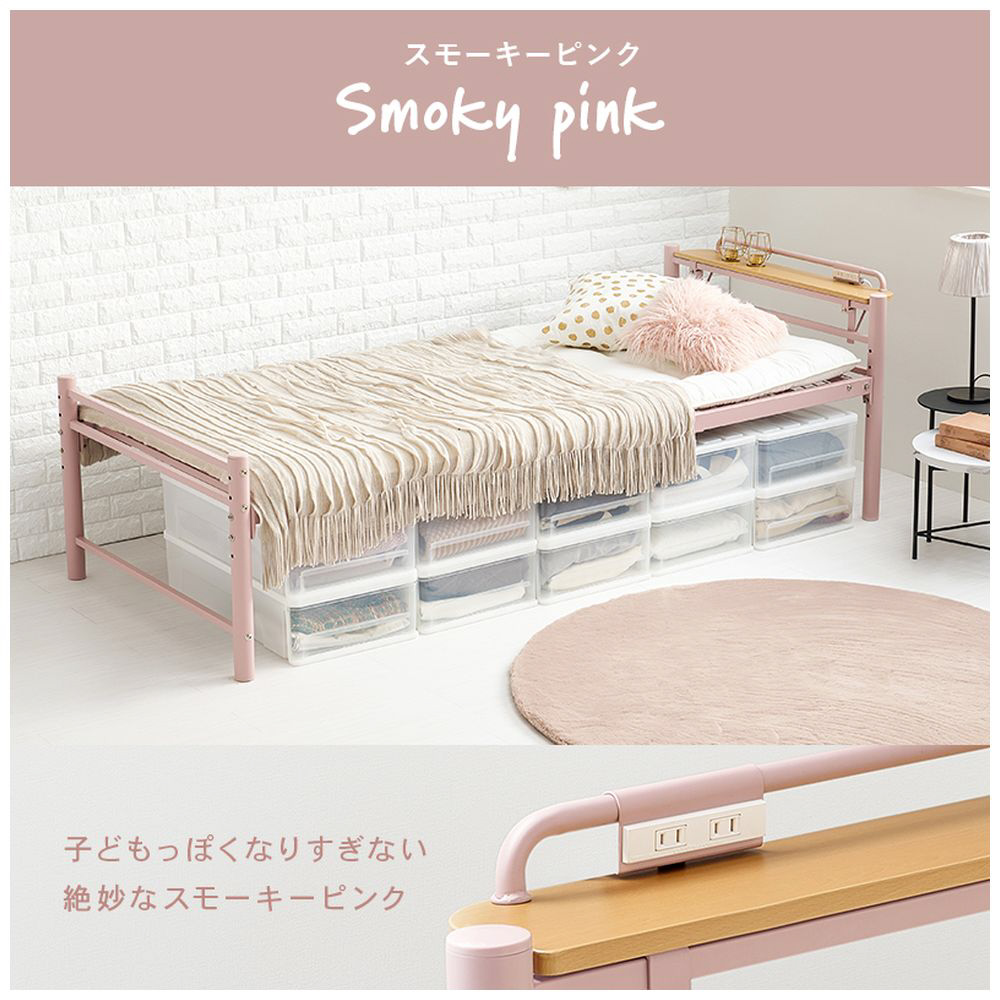 敷布団がそのまま使えるロングサイズ。宮棚が取り外せてカラーが豊富なオシャレなベッドです。