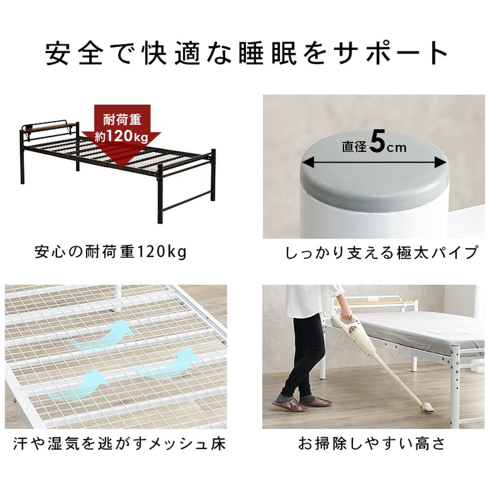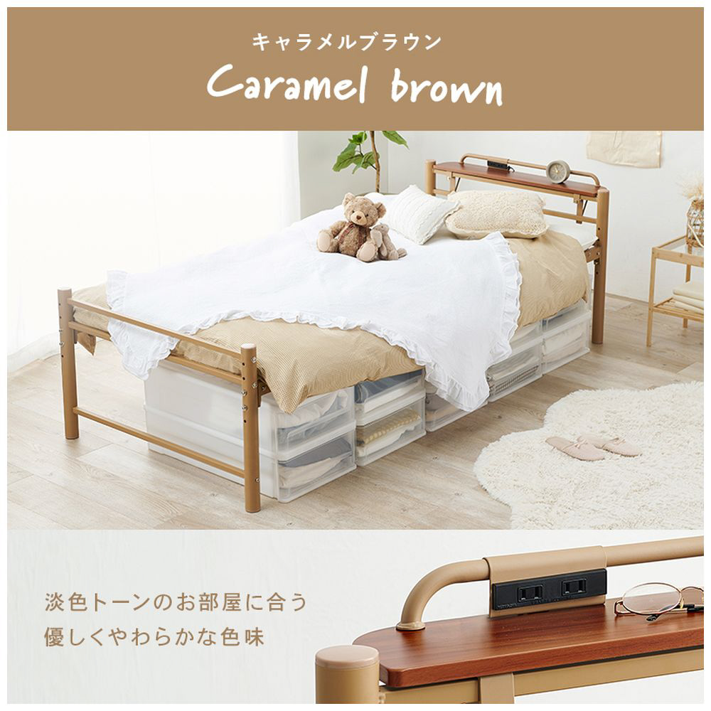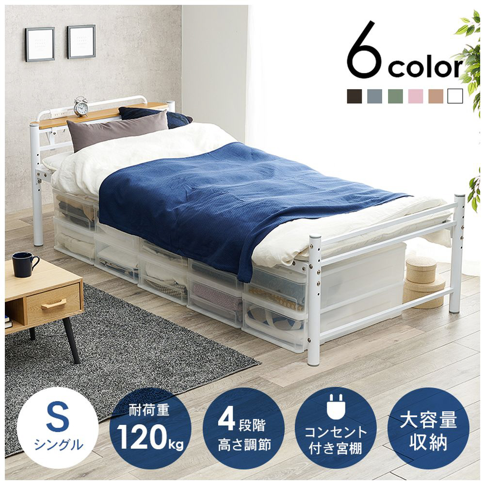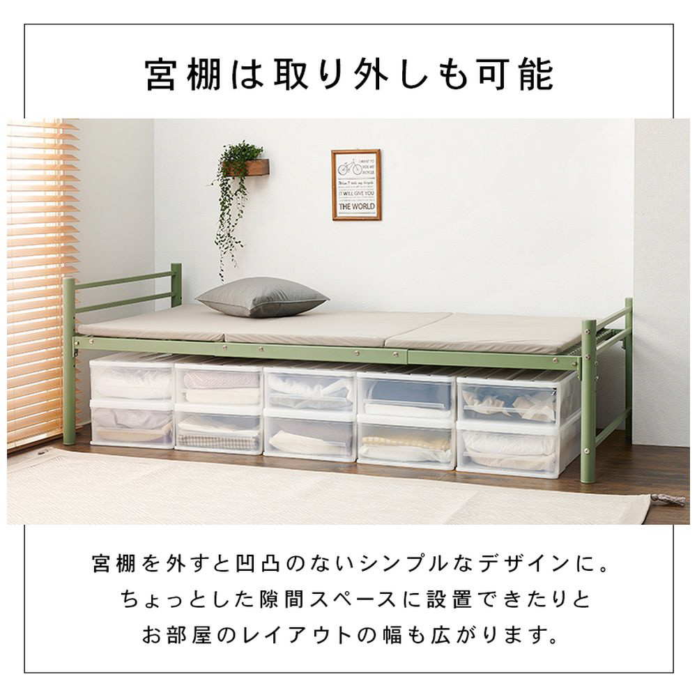 敷布団がそのまま使えるロングサイズ。宮棚が取り外せてカラーが豊富なオシャレなベッドです。