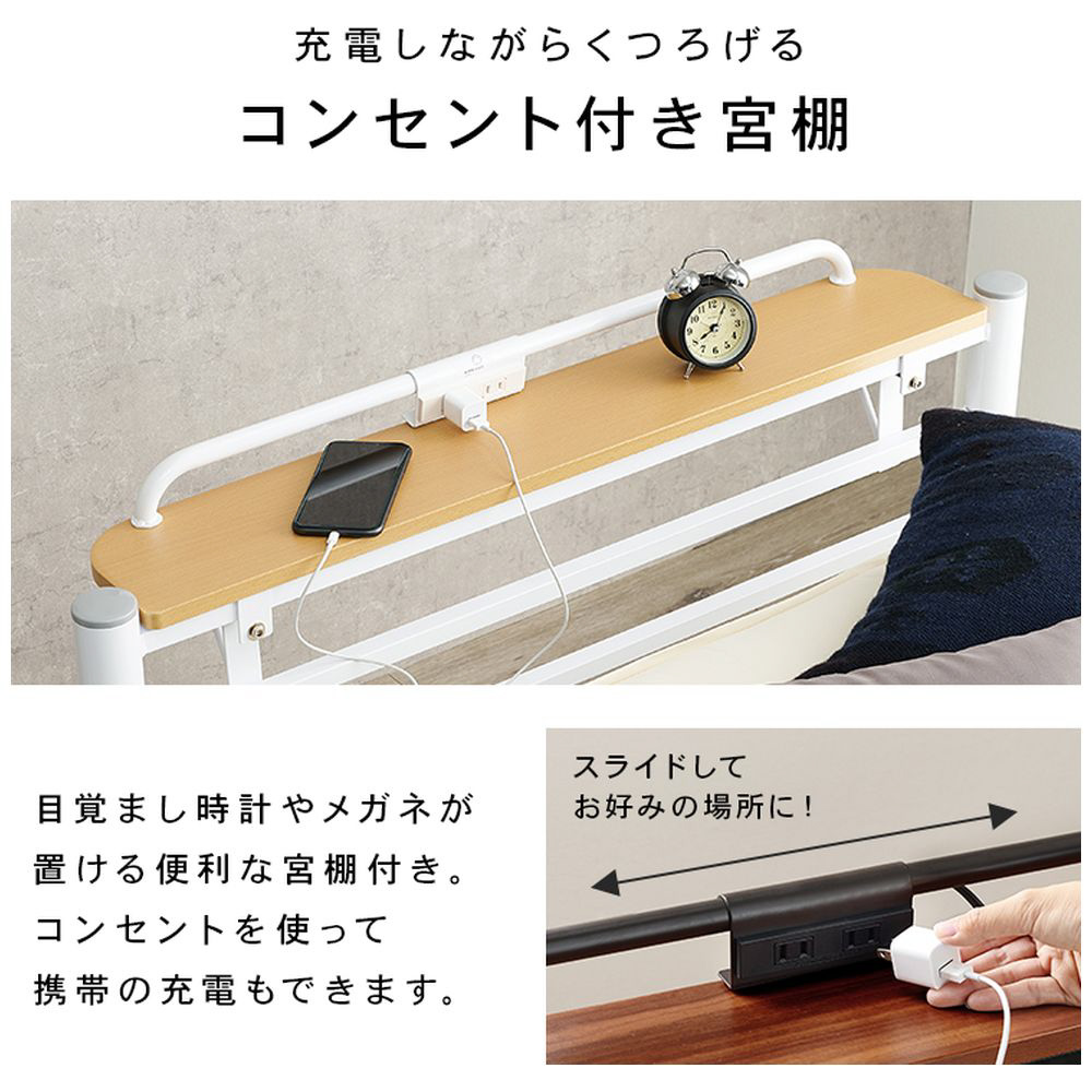 宮棚付きシングルロングベッド ホワイト KH3961SWH