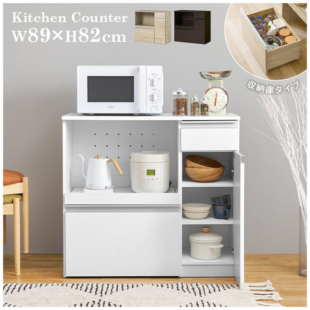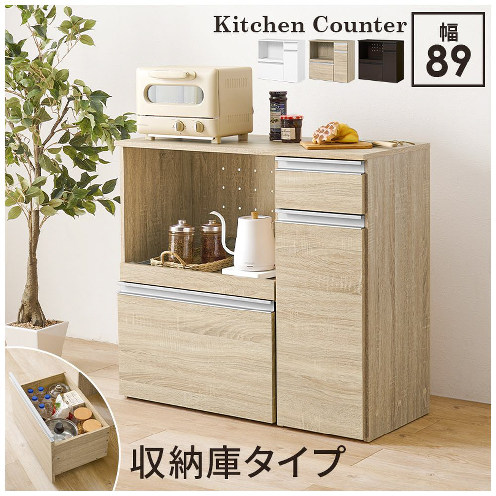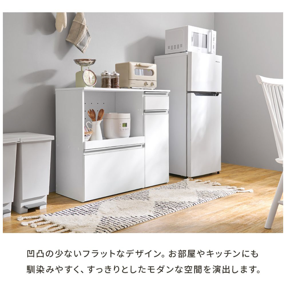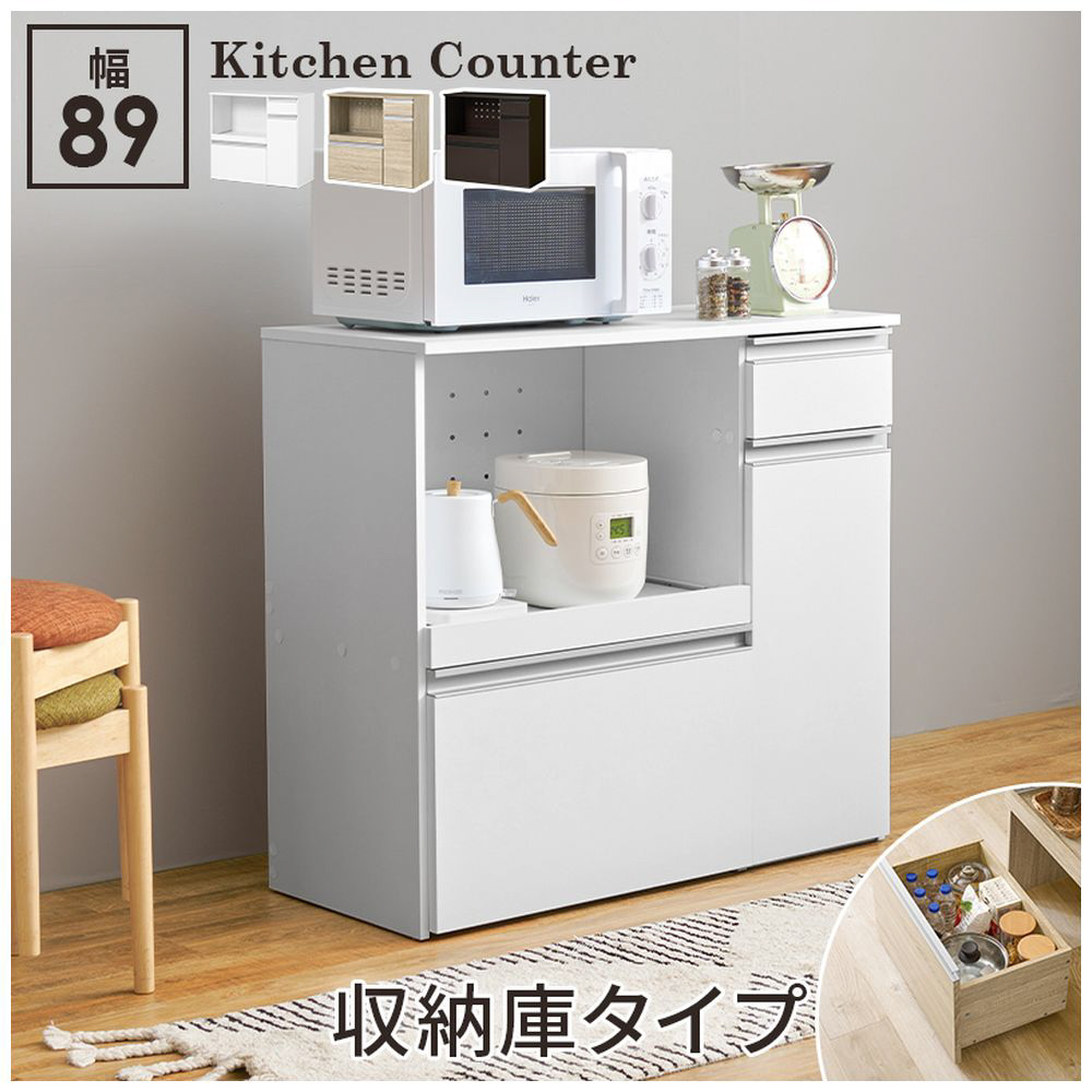 立って作業がしやすい天板高さのカウンターキャビネット。食器や調理器具、キッチン家電がスッキリ片付く大容量収納です。ワゴン収納庫タイプ