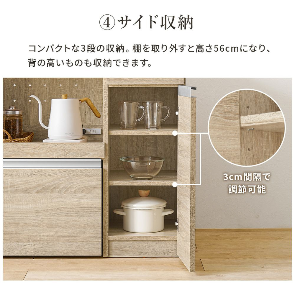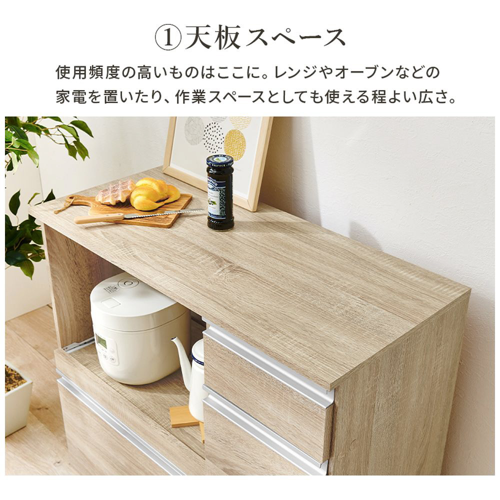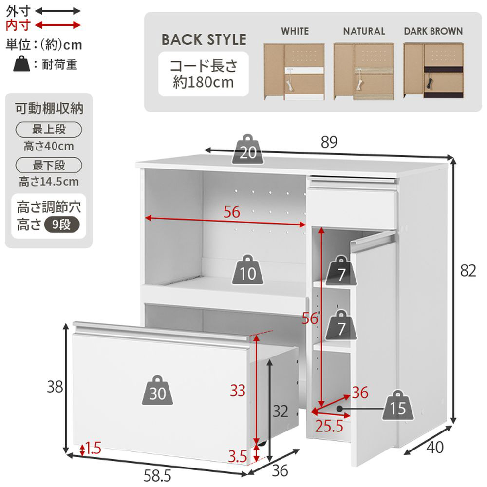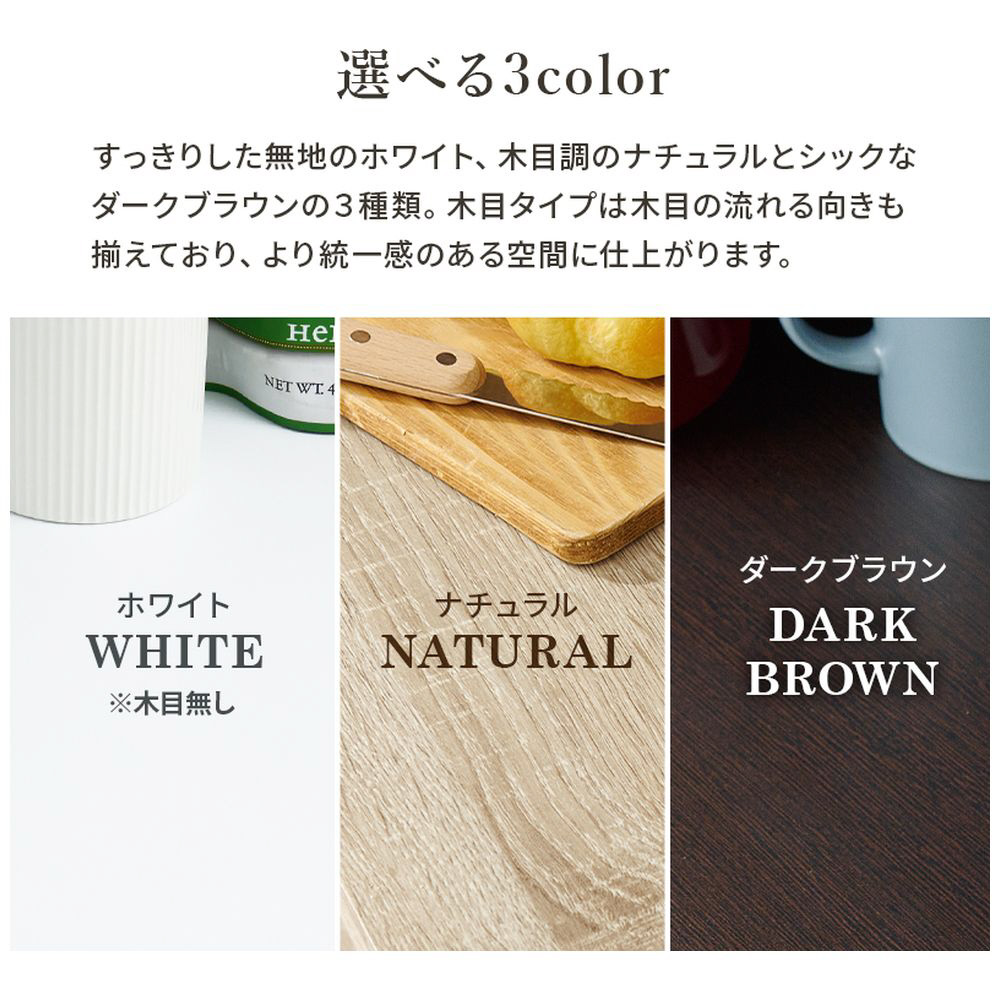 仕様1 ■主材: プリント紙化粧パーティクルボード、天板・スライド棚: 合成樹脂化粧パーティクルボード(メラミン樹脂)、取手: スチール