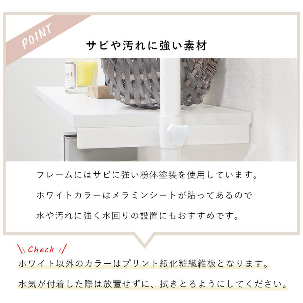 仕様1 ■フレーム: スチール、棚板: <ブラウン/ブラック>プリント紙化粧繊維板、<ナチュラル/ホワイト>プリント紙化粧繊維板、<ホワイト/ホワイト>メラミン樹脂化粧繊維板