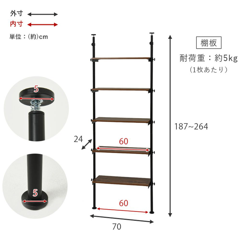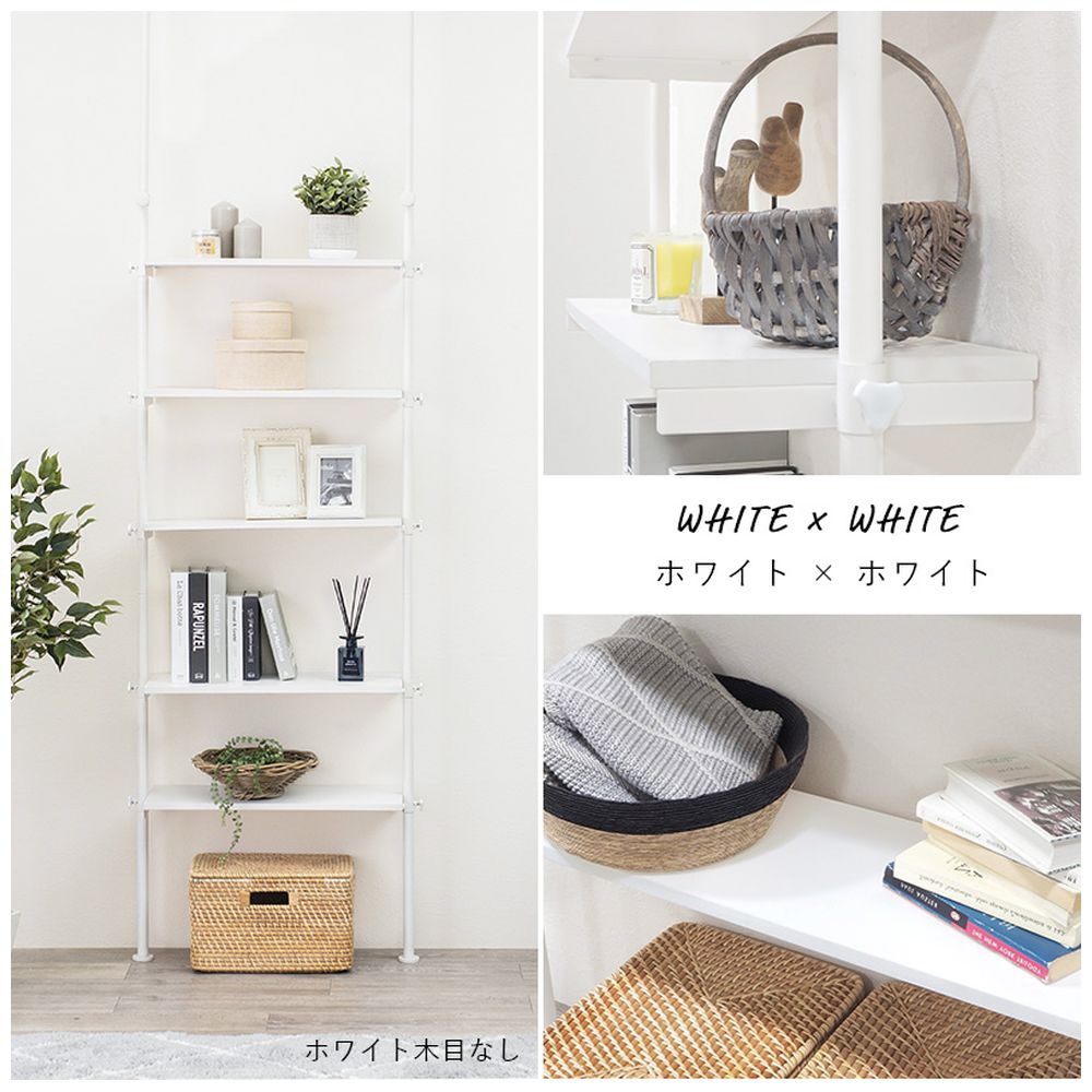 高さ無段階調整可能な棚でスッキリ収納できる、つっぱり5段ラック。