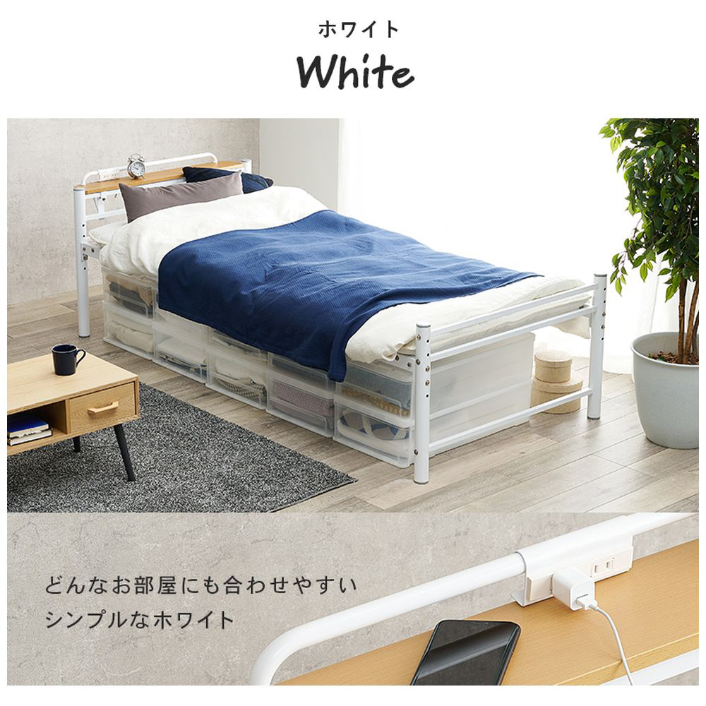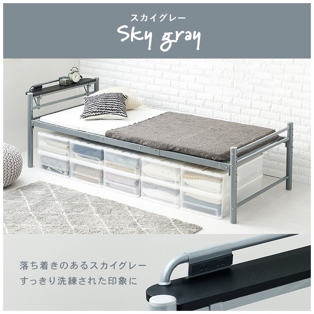 敷布団がそのまま使えるロングサイズ。宮棚が取り外せてカラーが豊富なオシャレなベッドです。