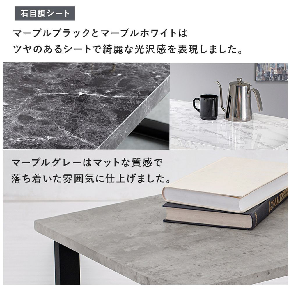リアルな素材感を再現した天板。スチール脚とのコントラストで、お部屋のインテリアとしての存在感を発揮します