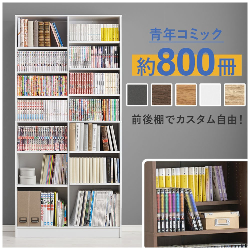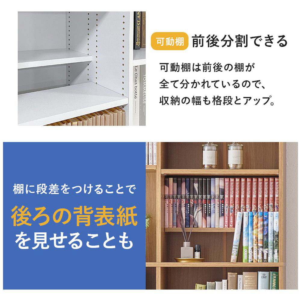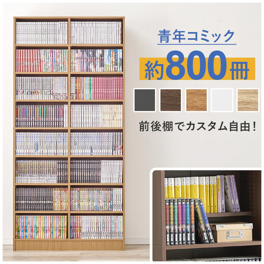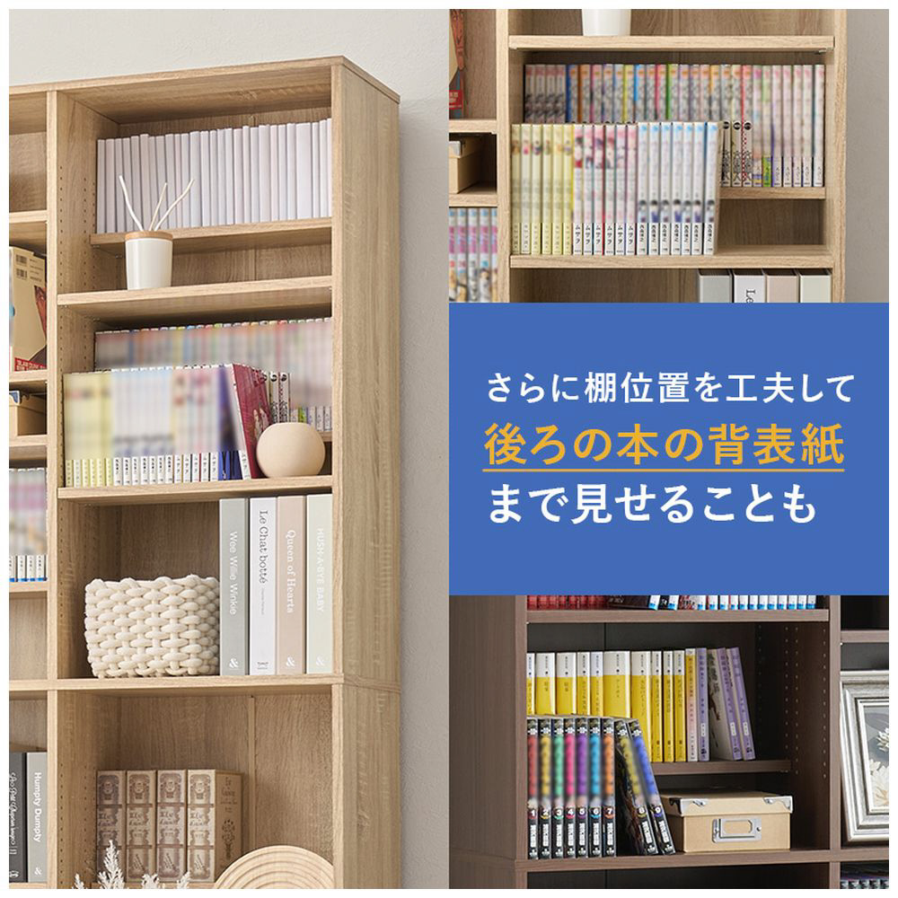 前後2列別々に棚板高さが変えられ、大容量収納できるマンガ好きの為の本棚