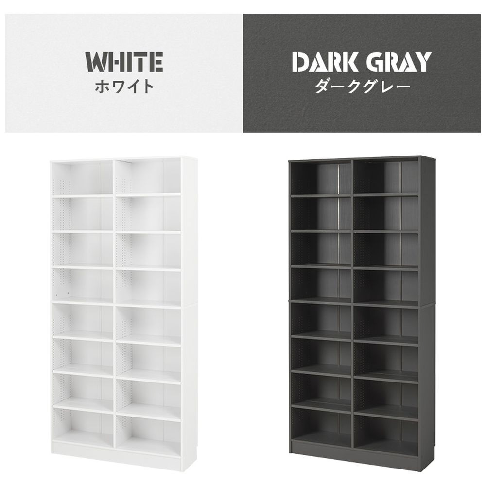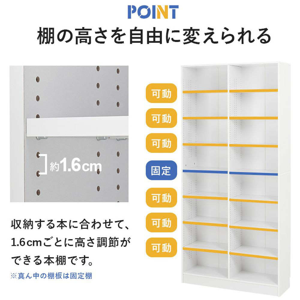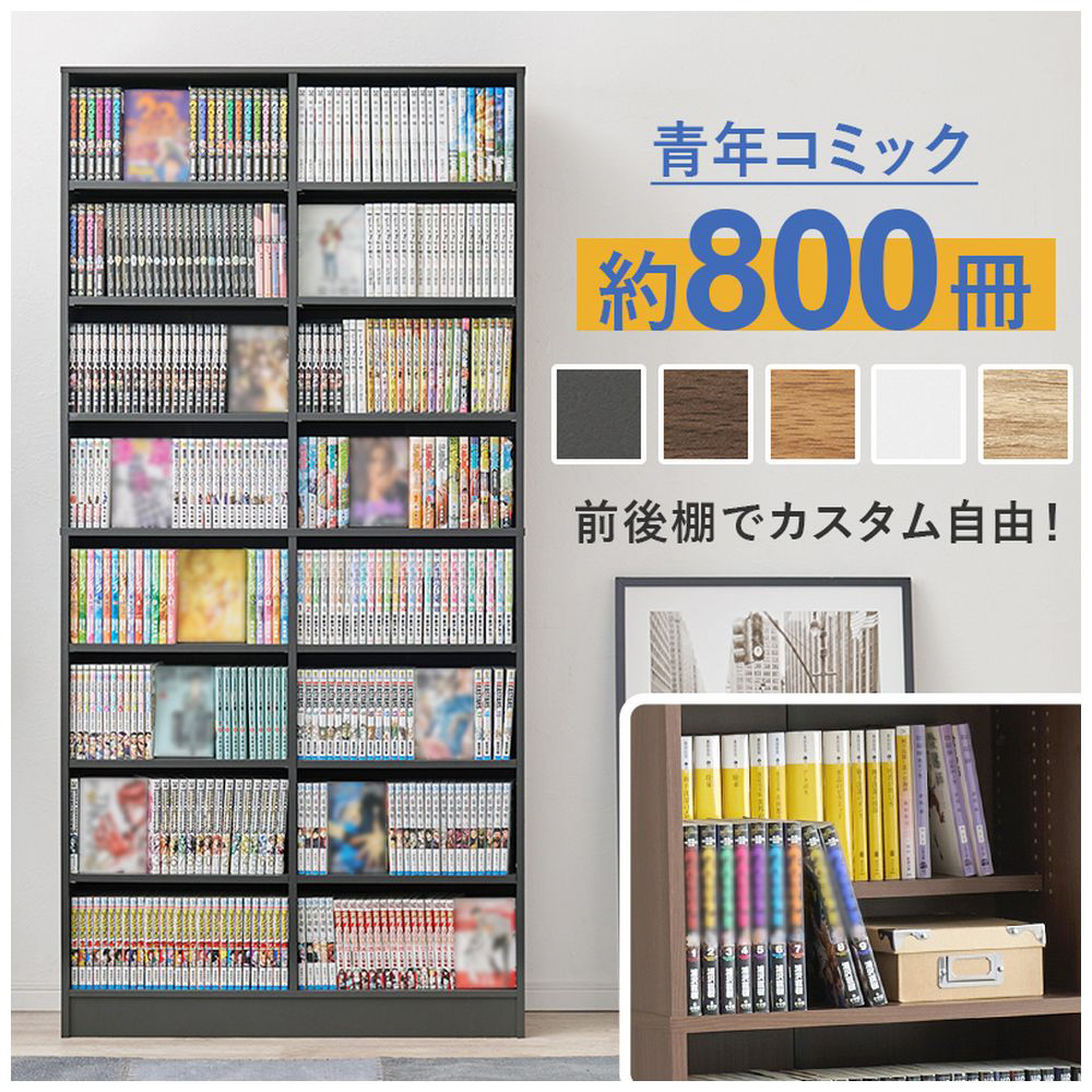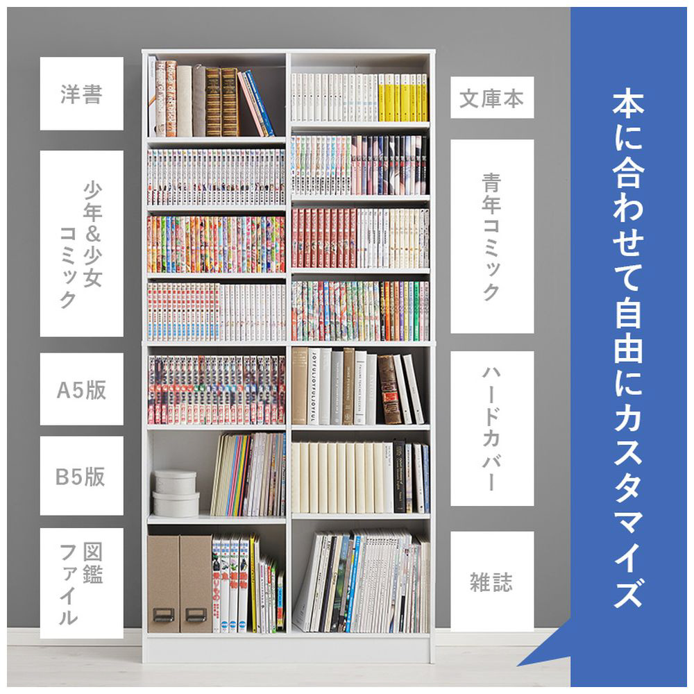 前後2列別々に棚板高さが変えられ、大容量収納できるマンガ好きの為の本棚