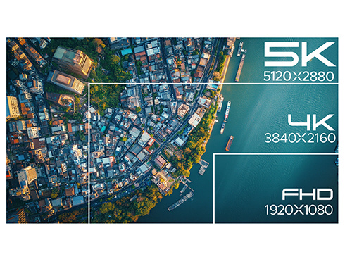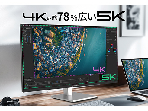 27インチのIPSパネルを搭載した、5K(5120x2880)解像度の液晶モニターです。フルHD(1920x1080)の約7倍、4K(3840x2160)の約1.7倍の高解像度は複数のウィンドウの同時表示を可能にし、圧倒的な高生産性を実現します。