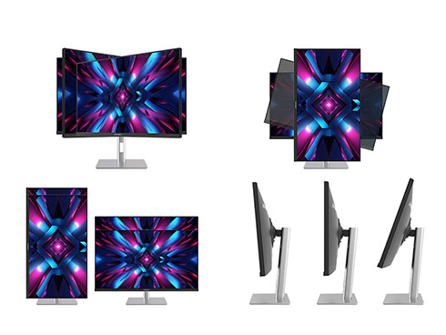 ■高さ調整が可能な昇降式多機能スタンドを搭載、最大110mmの範囲(横置時)で最適な高さに画面を調整可能です。また縦画面として使用出来るピボット(回転)機能にも対応します。スイーベル(首振り)機能は、左右各15°の範囲で動かせます。