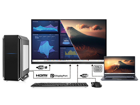 ■KVM機能に対応。モニターに接続したキーボード、マウスをデスクトップPCやUSB Type-C接続のノートPCで入力を切り替えた際にもそのまま使用可能です。