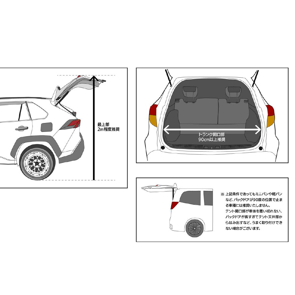 備考:SUV向けに設計された、バックドアを開けた状態で車と接続するアネックステント