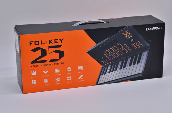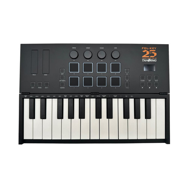FOL-KEY25はベロシティー対応のフルサイズ鍵盤を搭載した25鍵キーボードに8つのベロシティー感知型パッド、4つのコントロールノブ、2つのタッチコントロールセンサーを装備した、折りたたみ式MIDIキーボード&コントローラーです。