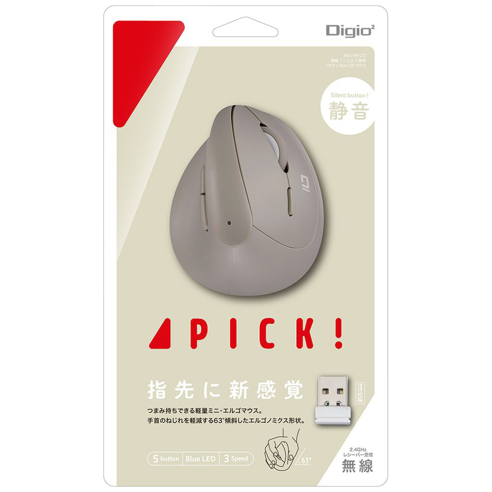 マウス PICK!(Chrome/Mac/Windows11対応) グレージュ MUS-RKF222GY [BlueLED /無線(ワイヤレス) /5ボタン /USB]