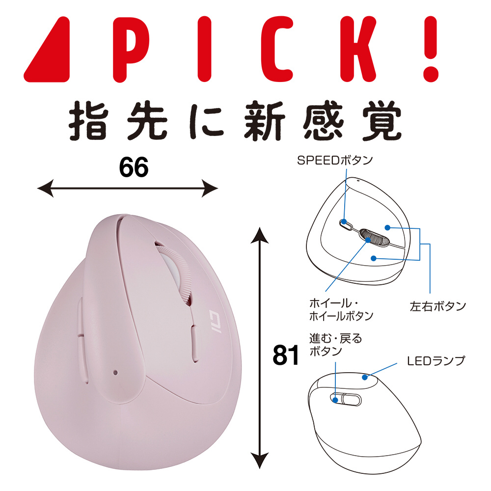 マウス PICK!(Chrome/Mac/Windows11対応) ピンク MUS-RKF222P [BlueLED /無線(ワイヤレス) /5ボタン /USB]