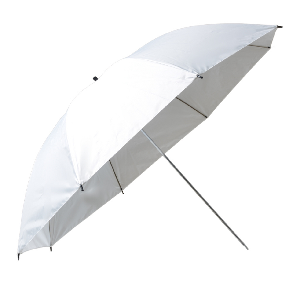 直径105cmのトランスルーセントタイプのパラソル。ストロボ光を透過させ拡散することで柔らかい光を演出。広い範囲に光を拡散させることができます。
