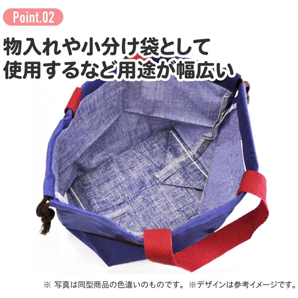お弁当箱を入れるのに便利な巾着袋です。ランチ巾着としてはもちろん、小物入れや小分け袋として使用するなど、用途の幅広い商品です。