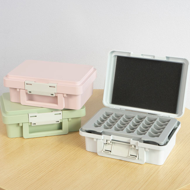 軽くて扱いやすいプラスチック製キャッシュケース。ハンドル付きで持ち運びに便利。フタの内側には「飛散防止クッション」が付いていて、持ち運び時の硬貨の飛び散りを軽減します。スチール製の手提げ金庫よりも手軽なマネーボックスが欲しいという方に最適。イベント物販や集金業務からご家庭の現金管理、防災対策まで幅広く対応。
