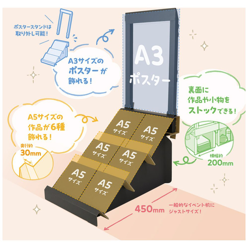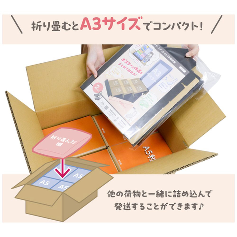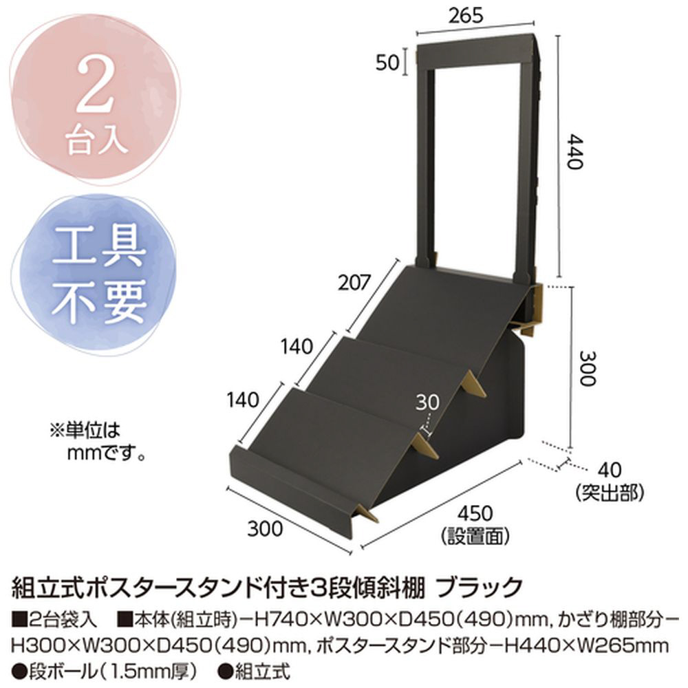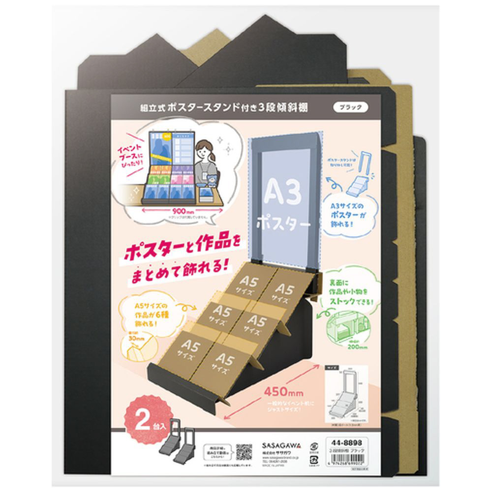 ササガワ 棚 組立式ポスタースタンド付き3段傾斜棚 ブラック