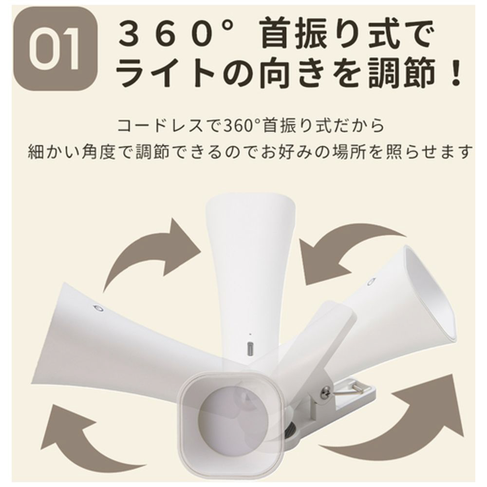 ■360度首振り式だからライトの向きを調節できます