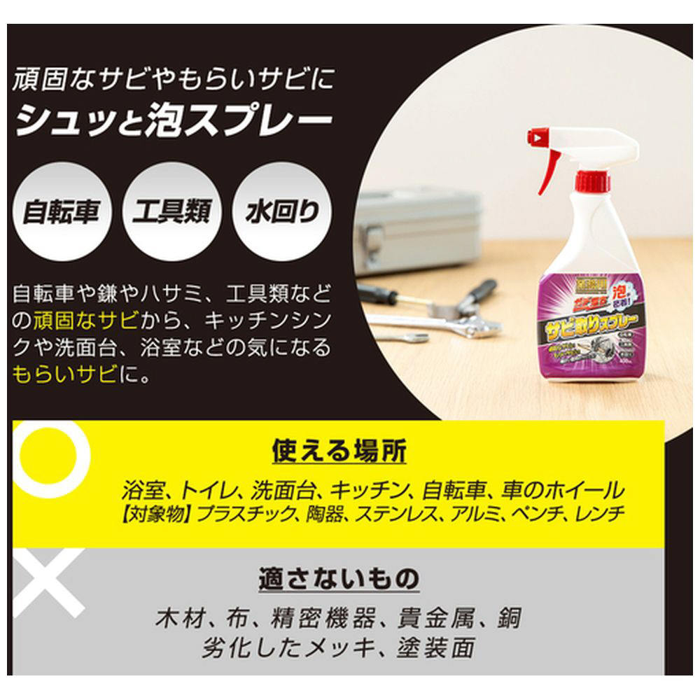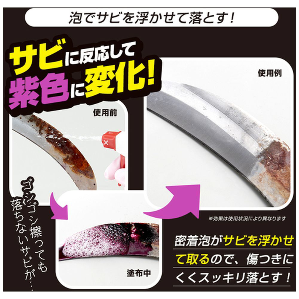 泡が密着してサビを落とすことができる業務用のサビ取りスプレーです。