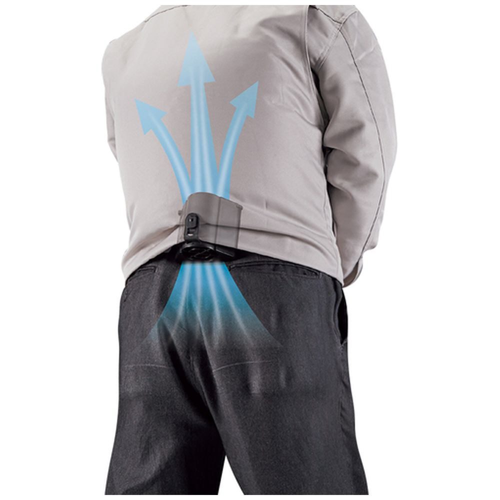 ファンから取り入れた空気を身体と作業着の間に流して、汗が蒸発する際の気化熱で体を冷やして涼しく快適な環境にします。