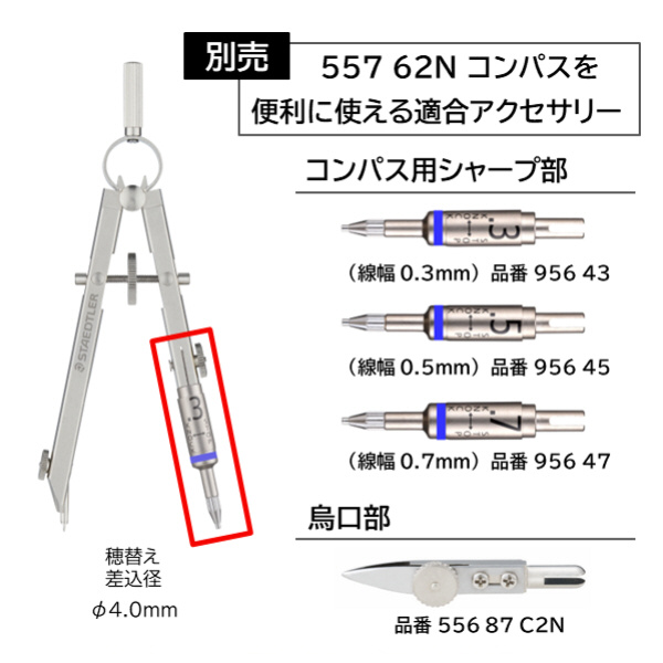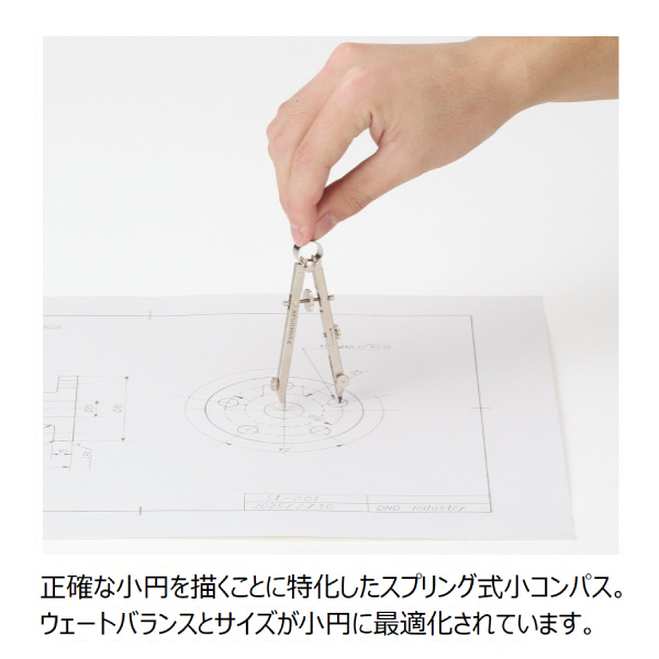 差込径が4.0mmのスプリング小コンパスは、コンパクトでスタイリッシュなデザインのコンパスです。