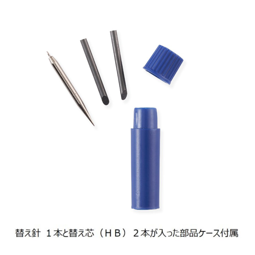 中車式を採用することで安定したきれいな円を書けます。HB芯2本と段針1本がセットされた部品ケース付。