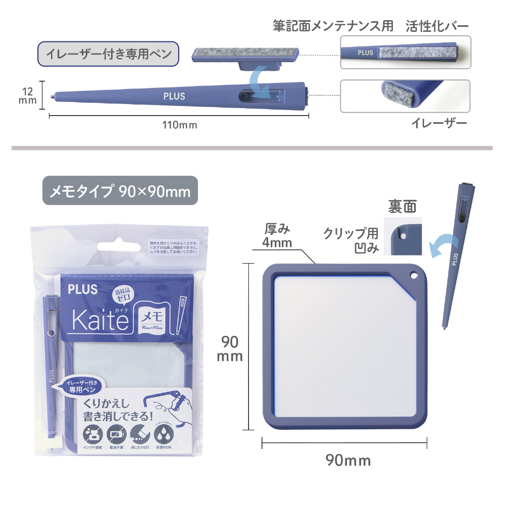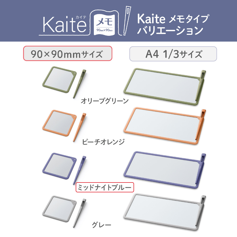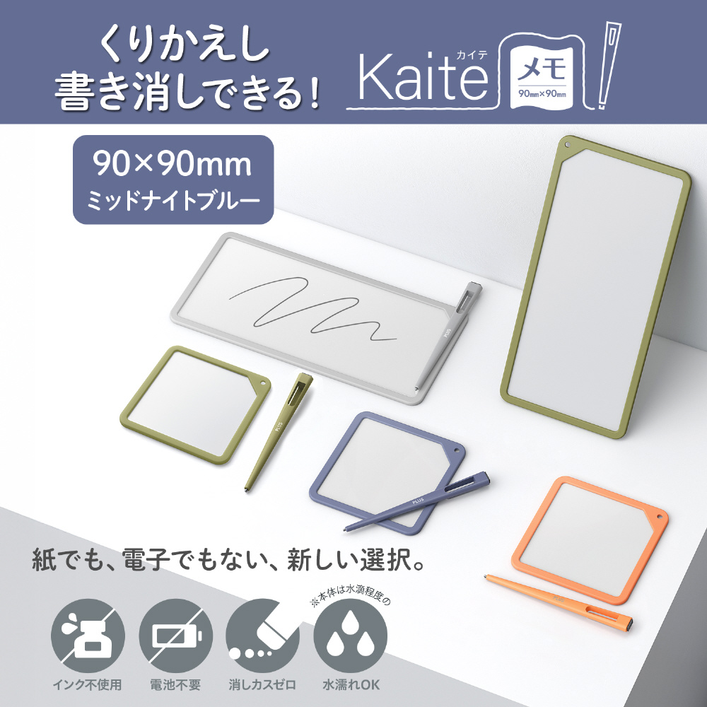 紙でも、電子でもない、新しい選択。必要なのはKaiteだけ。何度もくり返し、紙のようにスラスラ書き消しできるメモ、Kaite(カイテ)。