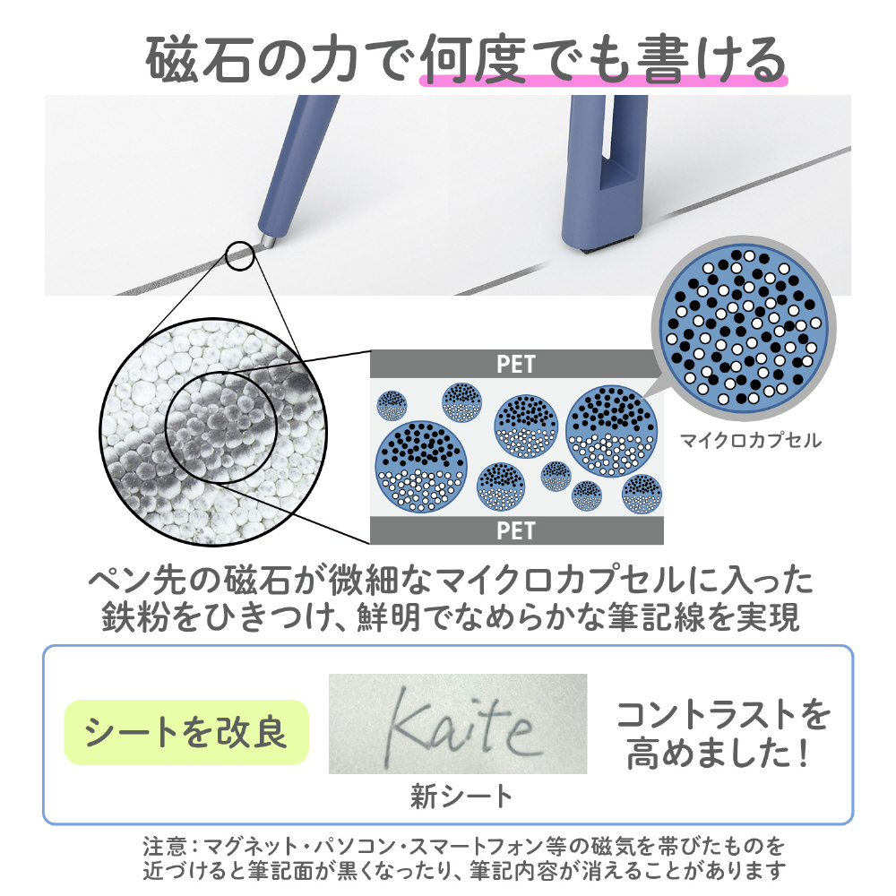 Kaiteは、独自開発の磁性シートと専用ペンを使用した新しい筆記ツールとして2019年3月に誕生。