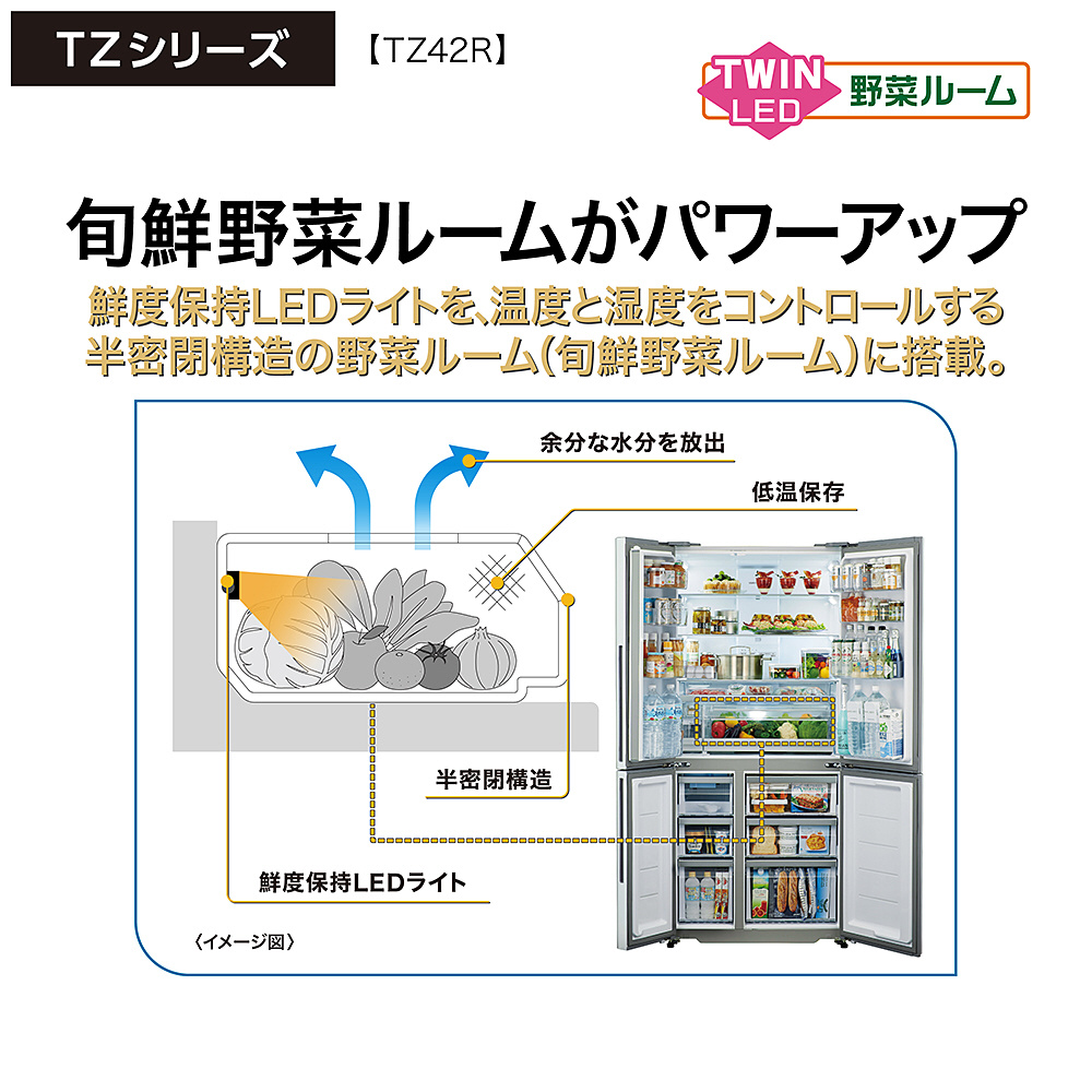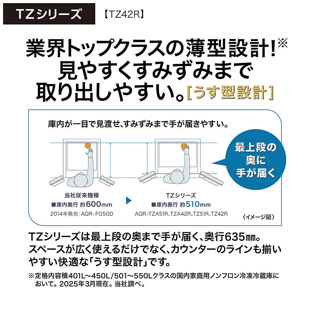 冷蔵庫 AQUA ダークウッドブラウン AQR-TZ42R(T) [幅70cm /420L /4ドア /観音開きタイプ /2025年]