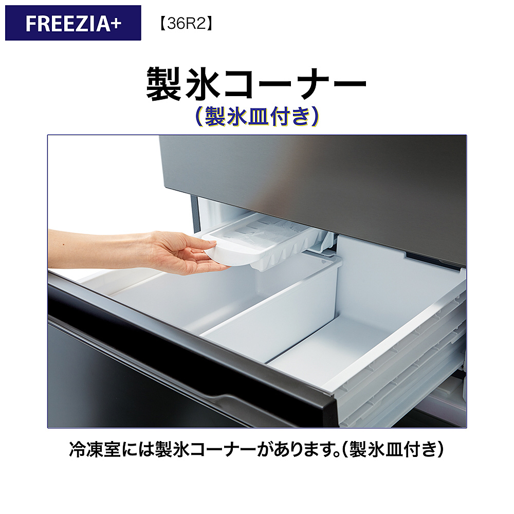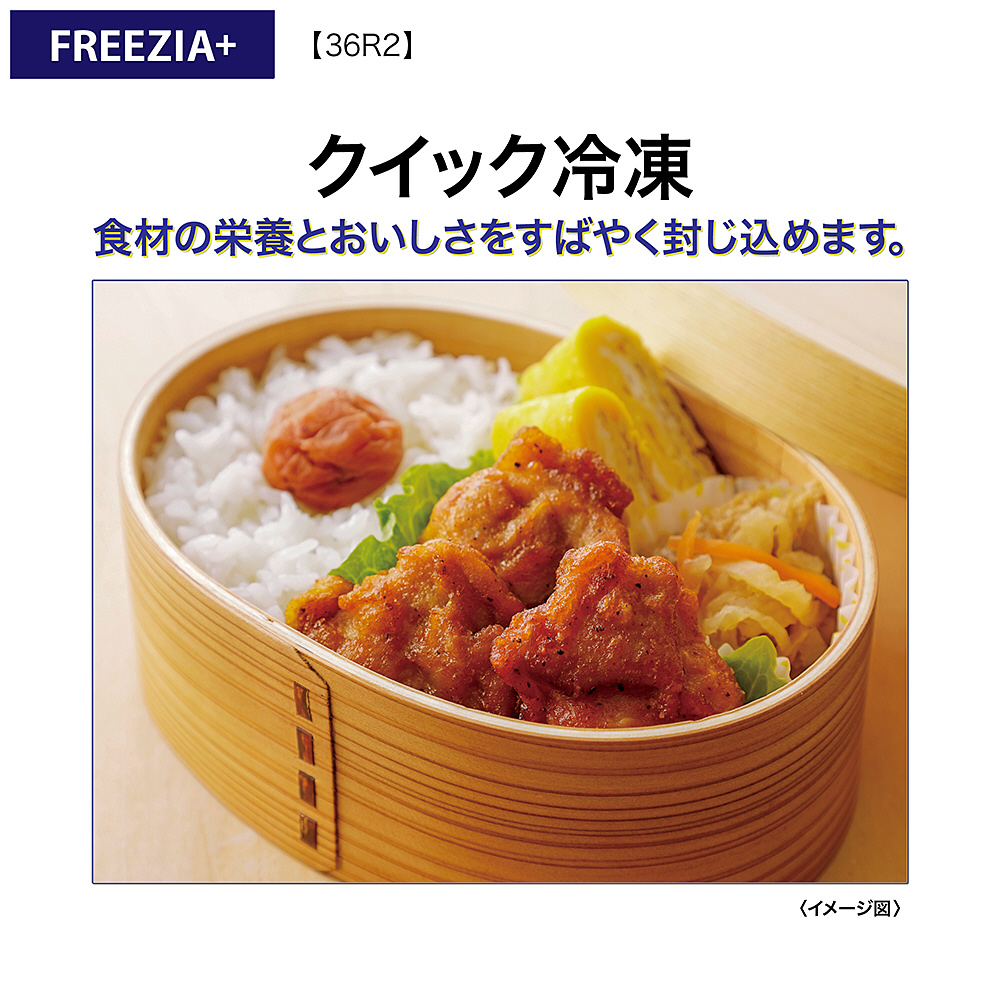 インバーター採用で家計にやさしい省エネ設計。たっぷり入る大容量まんなか2段冷凍室だから、まとめ買いに安心!ラクな姿勢で出し入れしやすい。 クイック冷凍で食材の栄養とおいしさをすばやく封じ込めます。