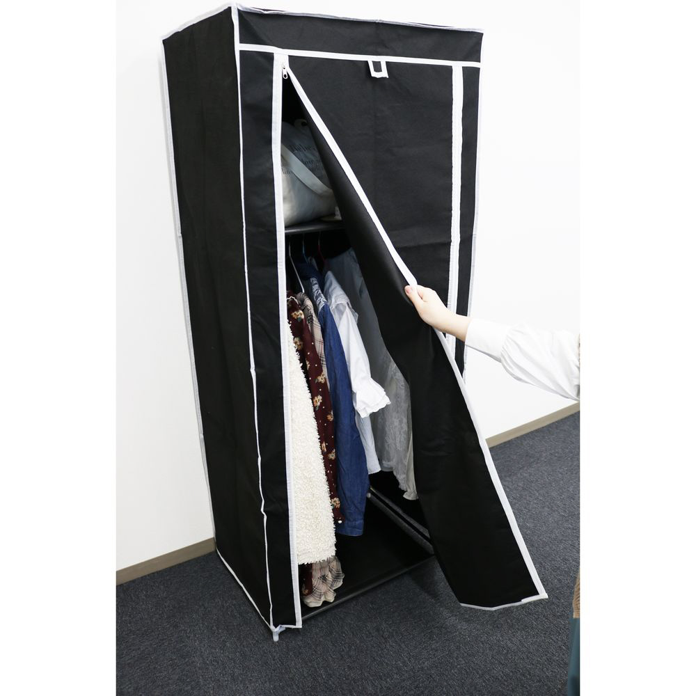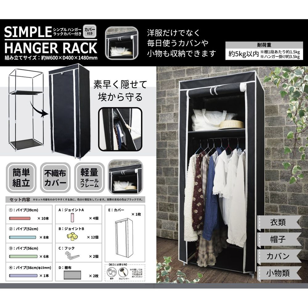 ハンガーラックにカバーが付いているので、衣類をホコリから守ります。棚部分には洋服だけでなく毎日使うカバンや小物も収納できます。カバーはクルっと巻いて固定ができるので、洋服を出すときに邪魔になりません。必要ないときはカバーを外してオープンラックとしてもお使いいただけます。工具不要で簡単に組み立てができます。【仕様】●組み立て式●耐荷重:棚部分:1.5kg、ハンガー部:3.5kg、全体:5kg●棚部分高さ:35cm
