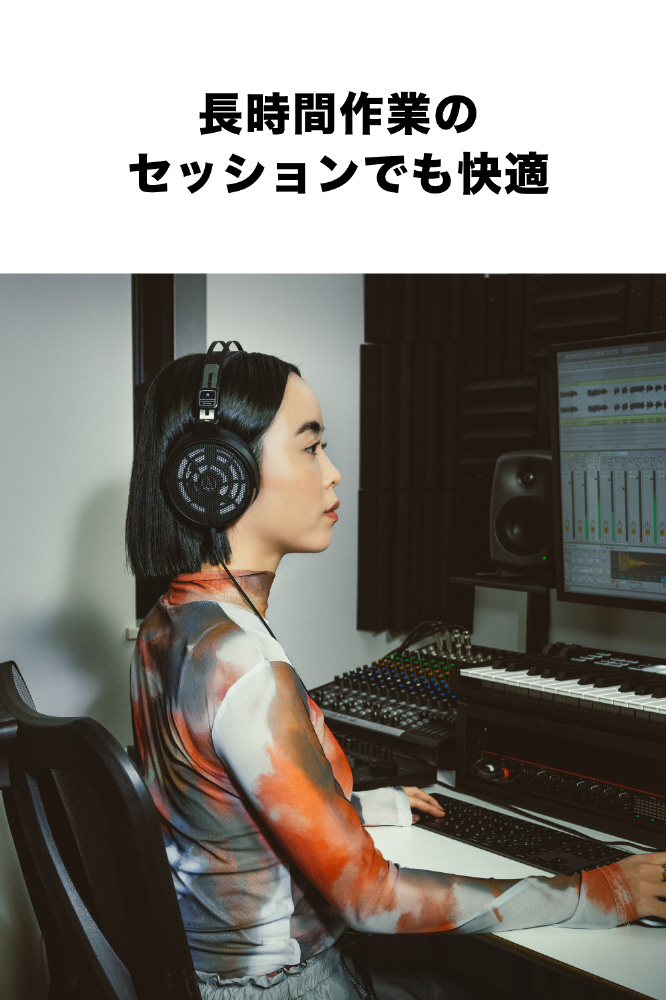 自宅での音楽制作をはじめ、マルチメディアコンテンツ制作など、日常的なモニタリングツールとしても最適です。オープンバックヘッドホンは、ディテールと正確さを提供し、リアルな音色と動的なニュアンスで音を再現できるため、没入感のある自然なモニタリングが行えます。
