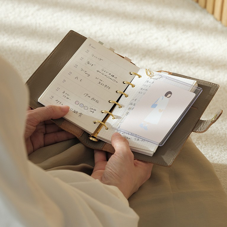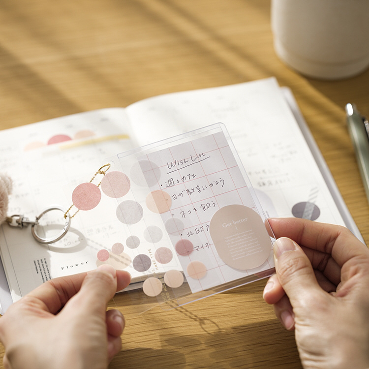 お気に入りのカードや、よく使うシールなどを汚れや折れから守りながら“見やすく”手帳やノートに挟んで持つことができます。