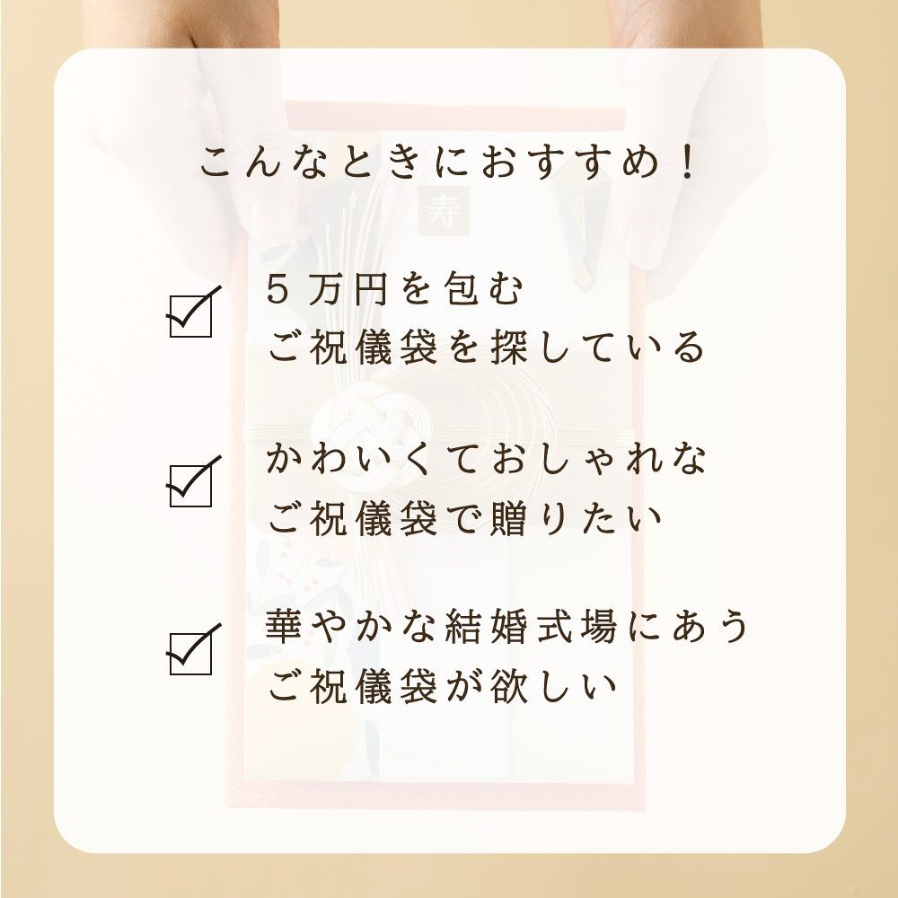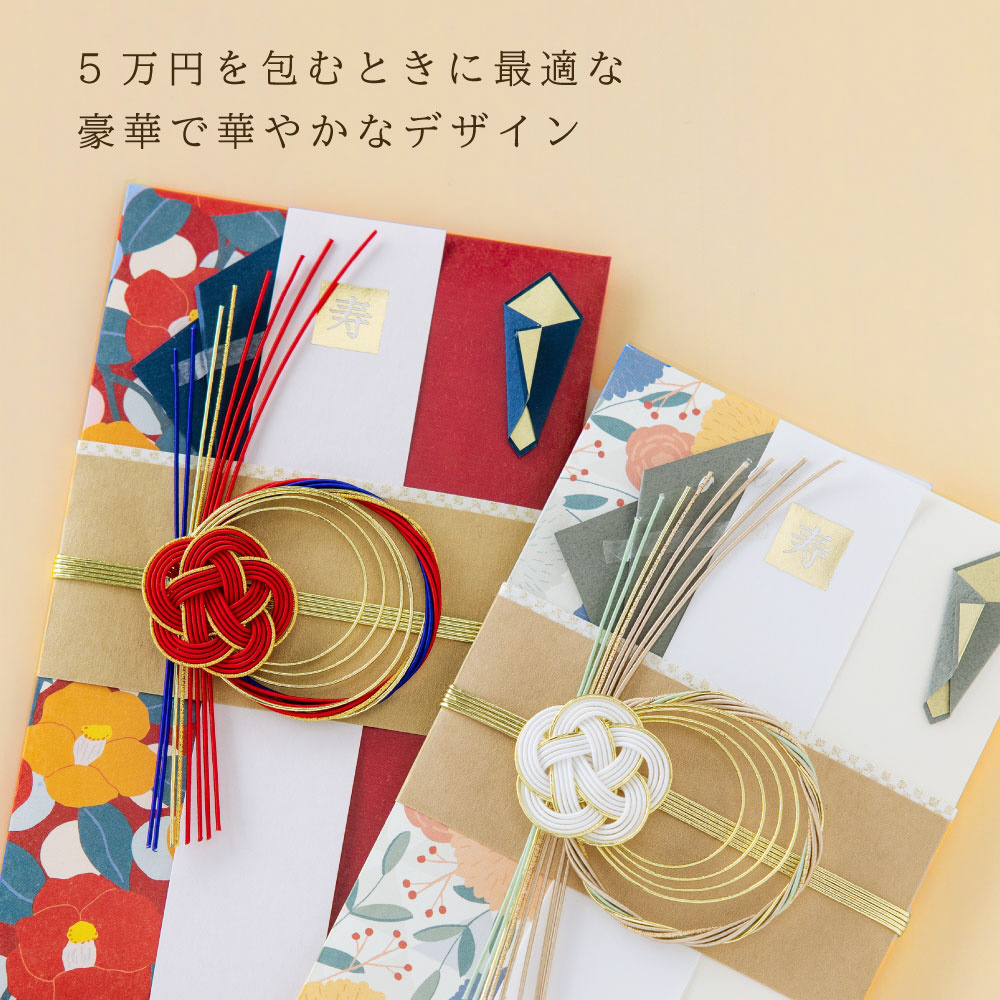 3万円〜5万円までのお包みに最適な、豪華なボリュームの水引がポイント。