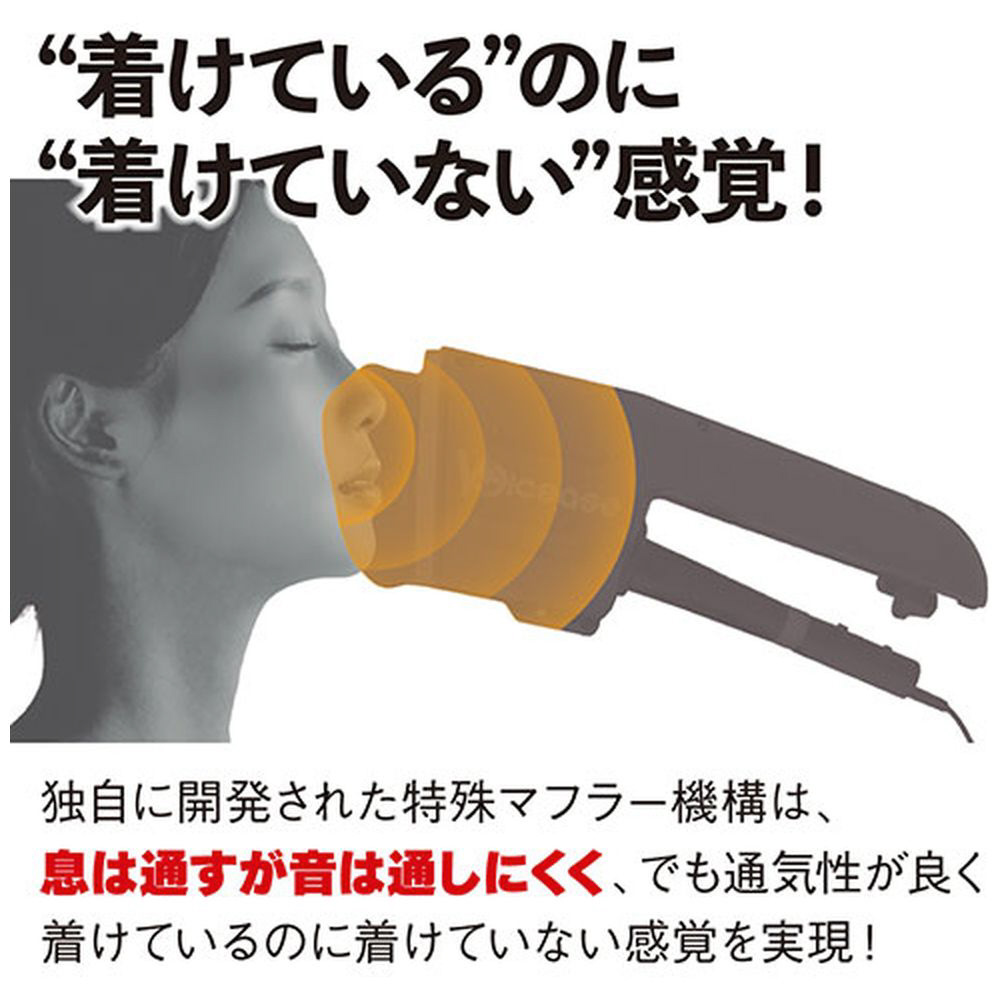 口だけでなく鼻まで覆うことで、声全体の反響をキャッチし、高い遮音効果を実現しています。