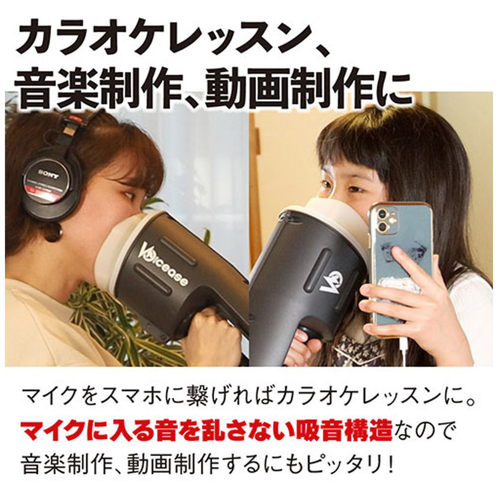 ■Voicease(ヴォイシーズ)は、マイクに装着するだけで自分の声や周囲の音を遮音できる「片手で持てる防音室」です。