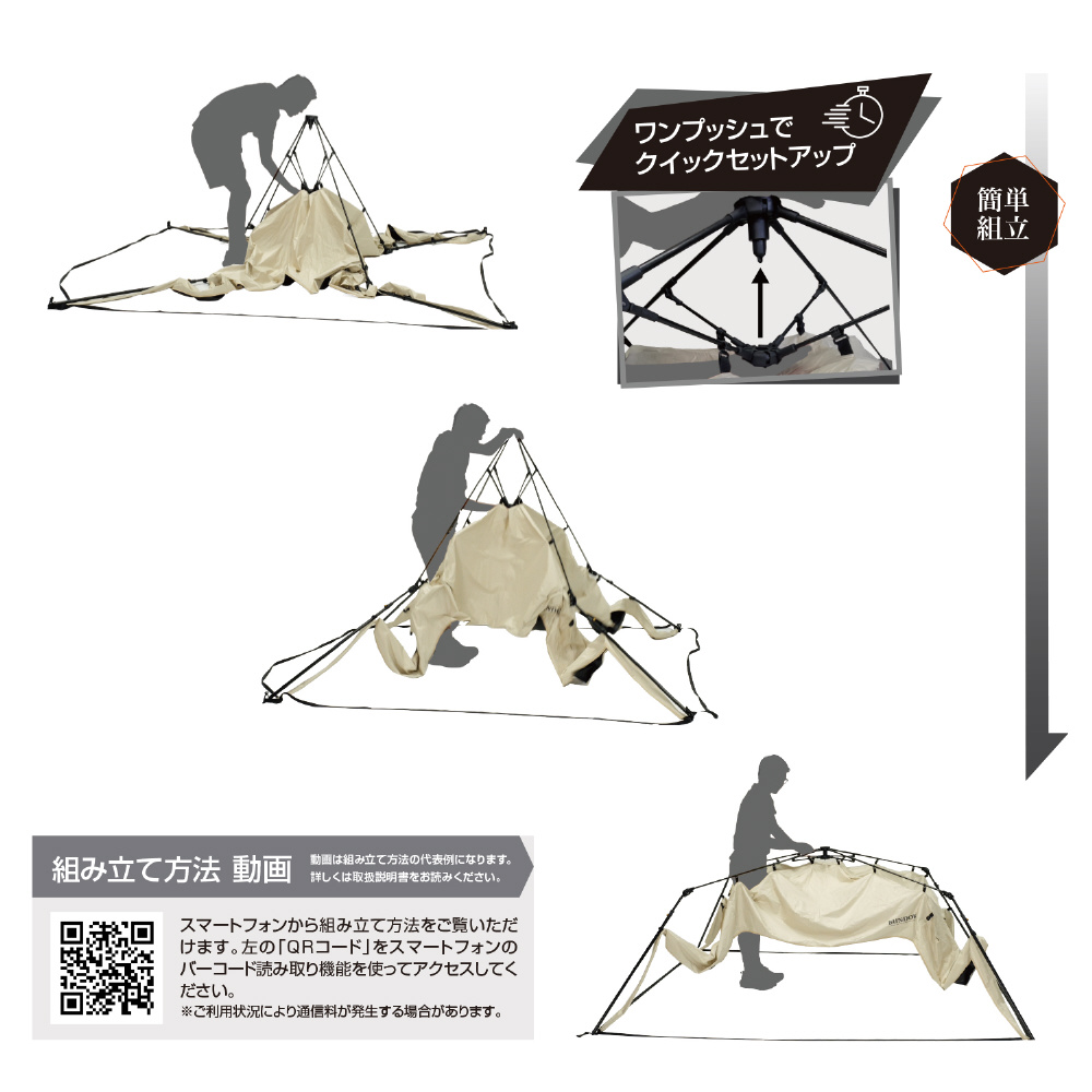 ※本製品はファミリーキャンプ用として製作してありますので山岳用、常設、日常使用の頻度の高い使用は避けてください。