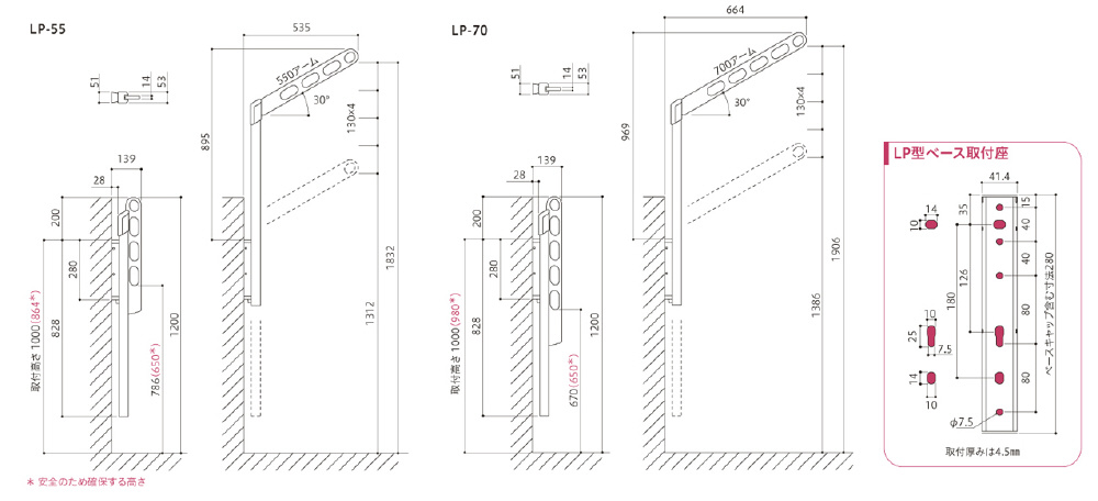 屋外腰壁用物干 上下式 LP型 ハイグレードタイプ 1組 ホスクリーン ホワイト LP-70-W