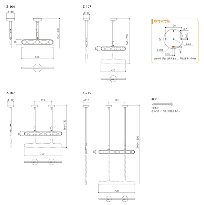 屋外軒天用物干 Z型 1組 ホスクリーン ダークブロンズ Z-207-DB
