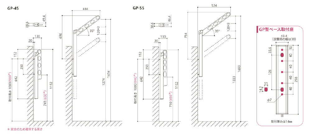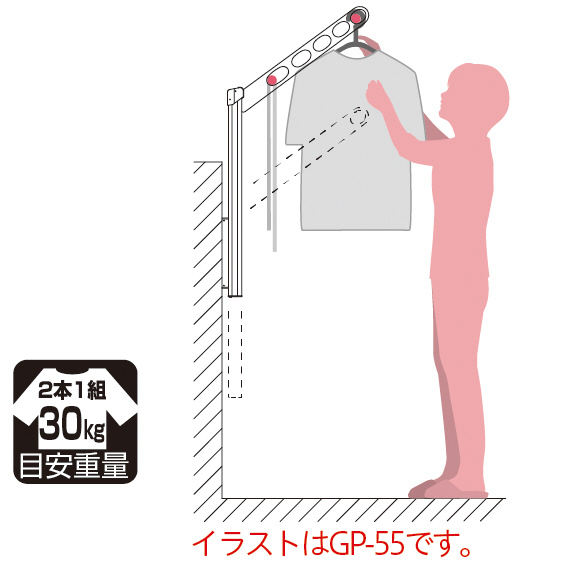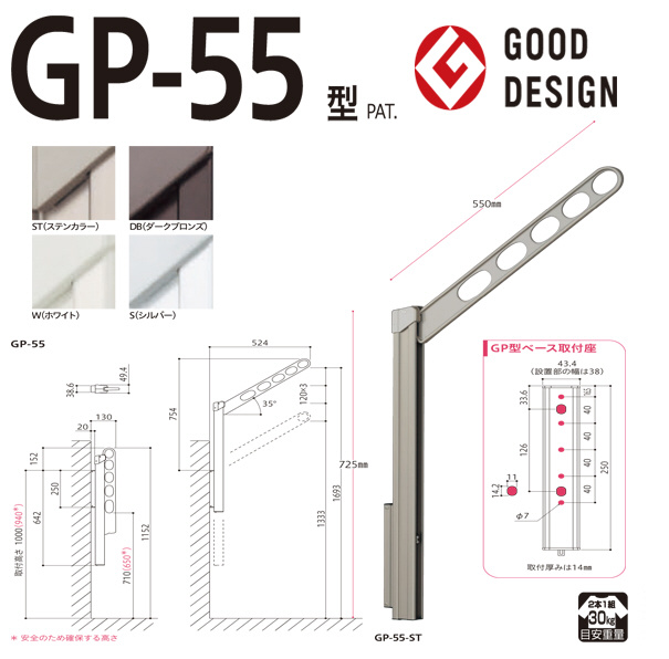 屋外腰壁用物干 上下式 GP型 ローコストタイプ 1組 ホスクリーン シルバー GP-55-S